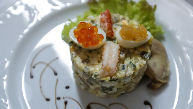 Стоимость самого традиционного блюда на российском новогоднем столе - "салата "Оливье" - в этом году возрастет на 1,8% по сравнению с 2015 годом, подсчитали в Росстате. Это ниже уровня продуктовой инфляции. Так, в прошлом году россияне в среднем тратили на приготовление "Оливье" на четырех человек почти 305 рублей, в этом году салат обойдется им в 310 рублей, говорится в материалах Росстата. Стоимость приготовления другого традиционного новогоднего блюда - "Сельди "под шубой" - за год возросла на 3,7%, до 155 рублей. Из всех компонентов этих салатов за год больше всего подорожал майонез - на 8,7%. Стоимость набора продуктов питания для новогоднего стола в среднем по России в расчете на семью из четырех человек возросла за год на 3,6% и достигла 5,58 тыс. рублей, при этом минимальный продуктовый набор обойдется в среднем в 1,95 тыс. рублей (рост на 3,9%). Москвичам новогодний стол в этом году в среднем обойдется в 6,86 тыс. рублей (подорожал на 2,8%), жителям Петербурга - в 5,9 тыс. рублей (рост на 5,5%). Больше всего за новогодний стол в этом году заплатят жители Чукотки (в среднем 8,4 тыс. рублей), меньше всего - жители Республики Калмыкия (4,1 тыс. рублей). Рост цен на продовольственные товары в январе - ноябре 2016 года составил 4%, сообщал ранее Росстат.