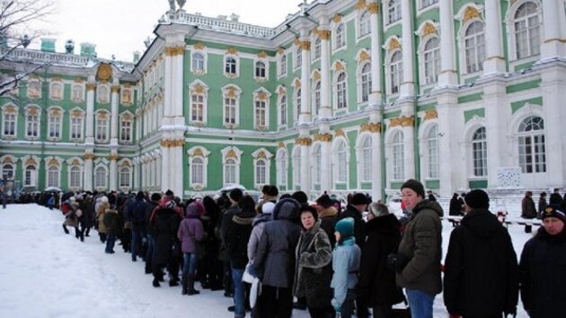 Русский музей и Эрмитаж сегодня бьют рекорды посещаемости. Петербуржцы растянулись в огромные очереди в 20-градусный мороз, чтобы попасть на выставки.