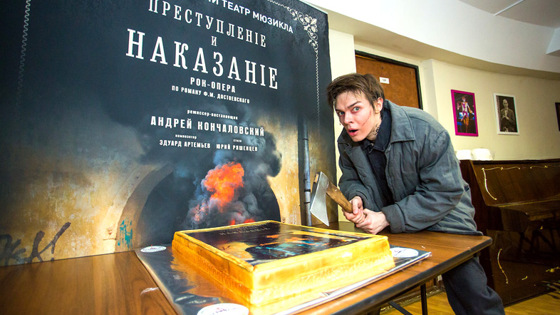 Спектакль Андрея Кончаловского на музыку Эдуарда Артемьева стал одним из главных культурных событий года и номинируется на "Золотую маску" сразу в 6 номинациях. Несмотря на то, что мюзикл выдержал уже 50 показов, он до сих пор претерпевает существенные изменения - например, к новому сезону Артемьев полностью переписал первую арию и внес еще несколько существенных изменений. Оригинальное прочтение романа, представленное Андреем Кончаловским и Юрием Ряшенцевым, переносит героев в Россию конца ХХ века. Это позволило создателям спектакля найти необычные ракурсы проблем и вопросов, поднимаемых Достоевским. Передать режиссерский замысел Андрея Кончаловского позволила и высокотехнологичность постановки. Декорации Мэтта Диили — стены-трансформеры, превращающиеся то в городские улицы, то в подземный переход, то в квартирки Раскольникова и Сони, — дают зрителям возможность ощутить дух Санкт-Петербурга, описанного Достоевским. А уникальная технология 6D-видеомэппинга, позволяющая проецировать изображения на движущие предметы и являющаяся инновационной для отечественного театра, подарила практически бесконечные возможности для погружения в мир «Преступления и наказания». 12 проекторов, задействованных в постановке, позволяют создать 3D-эффект, для восприятия которого не нужны специальные очки. Оценить постановку пришли Аврора, Елена Захарова, Ирина Тонева, Денис Клявер, Елена Борщева, Валерий Яременко, Наталья Гулькина, спортсменки Светлана Мастеркова и Светлана Ромашина, дирижер Юрий Медяник и другие. Андрей Кончаловский: «Этот спектакль - один из самых сложных для российский сцены. Он не уступает по своей сложности и зрелищности бродвейским спектаклям. Мы перенесли героев романа Достоевского в современную эпоху, но также как в античной драме и трагедии модно найти сегодняшние характеры, так и в романе Достоевского, как у великого классика, герои абсолютно созвучны нынешнему времени. Человек же не меняется, меняется модель телефона. Достоевский универсален во всех смыслах, и настолько подробен, что мало кто залезал в эти закоулки человеческой души как Федор Михайлович». Елена Захарова: «Я смотрю этот спектакль уже второй раз. Мне очень нравится, что это современное прочтение, это мощная режиссерская работа. Андрей Кончаловский - невероятно талантливый человек, который может так чувствовать время, так правильно расставлять акценты. Эта постановка для современных людей. Конечно, можно было поставить, как это было тогда, но именно с помощью "игры со временем" получается невероятный эффект. Я не фанатка мюзиклов, я больше люблю драматическое искусство, но это потрясающий спектакль». Аврора: «Самое интересное для меня – это временная эклектика: есть и 60-е, и 90-е, и дореволюционная Россия, все переплетено и создает очень интересный симбиоз. И мне очень нравится главный герой. Мне всегда нравится, когда у автора есть свое прочтение уже известного произведения. И здесь мы в частности видим очень оригинальную авторскую версию». Юрий Медяник: «Мне очень понравилась музыка. Это яркий пример, как российский композитор может написать в лучших традициях американского мюзикла. Здесь удивительно точное попадание в стилистику и вместе с тем абсолютная эклектика: например, одно из самых ярких впечатлений первого действия - сцена с летающ