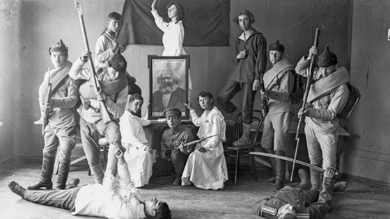 Большинство жителей русских городов узнавали о революции и свержении царской семьи не сразу и чаще всего случайно. Как правило, все продолжали заниматься привычными делами, а пространство вокруг постепенно обрастало духоподъемными плакатами и портретами новых вождей. «Теории и практики» в совместной рубрике с проектом Bird In Flight публикуют подборку фотографа Михаила Смодора, посвященную становлению советской власти в отдельно взятом городе.Владелец фотоателье в Галиче Михаил Смодор снимал жизнь города всю сознательную жизнь: со дня открытия ателье в 1905 году до ареста и отправки в ГУЛАГ 30 лет спустя. Фотоархив долгое время хранился (и портился) в запасниках Галичского краеведческого музея. Многие попытки напечатать или оцифровать архив не заканчивались успехом, пока Николай Сотников и Анна Трещилова не нашли подходящий сканер. Оцифрованные фотографии были выставлены в Мультимедиа Арт Музее в Москве. Первая годовщина Октября в Галиче, 1918 год. Немногочисленные жители смотрят построение солдат 181-го запасного полка Пирамида, 1919 год Выставка печатной продукции, которую предлагали галичанам в 1923 году Пирамида комсомольцев на фоне изображения первого мавзолея В. И. Ленина, 1924 год Прилет в Галич первого самолета, 1925 год Выступление агитатора в красном уголке гостиницы в Галиче перед крестьянами, приехавшими на ярмарки и базар, 1926 год Митинг по случаю 1 Мая, 1927 год Выставка стенной печати в краеведческом музее, 1927 год Сбрасывание колоколов с колокольни Староторжского монастыря, 1930 год Красный уголок на призывном пункте, 1931 Призывной пункт, 1931 год Праздник-конкурс на лучшего ребенка, 1933 год Фотографии: © Михаил Смодор / Галичский краеведческий музейБольше фотографий на сайте Bird In Flight.
