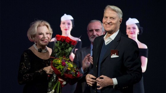 Брошь, которую в тот вечер прикололи на грудь девяти лауреатов – единственная брошь в мире, созданная театральным художником (авторская работа главного художника театра имени Е. Вахтангова Максима Обрезкова). Она заключает в себе символику: растение – жизненная сила, цветок – высочайшая награда зрителя, пятилистная сирень – счастливая примета, символ весны и любимый цветок Евгения Багратионовича Вахтангова. В дополнение к броши номинанты получали диплом, букет цветов и творческий номер. Уникальная премия “Человек театра” была учреждена в 2015 году художественным руководителем театра Римасом Туминасом. Уникальность ее в том, что награждены могут быть любые работники театра вне зависимости от профессии. Лауреатом в равной степени может стать не только актер, но и сотрудник гардероба, строитель или работник одного из цехов театра. Здесь главное – вклад в общее дело и служение Театру Вахтангова. Фото: Предоставлены пресс-службой театра Вахтангова Присудить премию могут только сотрудники театра путем всеобщего тайного голосования. Каждый заполняет анкету, в которой предлагает пять своих кандидатов. Первой свою заслуженную награду получила руководитель костюмерного цеха Галина Петровна Бажанова. В следующем году она отметит юбилей – 50 лет работы в театре, но и по сей день буквально порхает по нему и знает на перечет все костюмы театра. Следом брошью была награждена одна из работниц этого цеха Раиса Ивановна Дольникова. За умение подобрать костюм и найти нужные слова для приободрения артистов. Ну и как же без женщины, которой доверено лицо актера?! Третьей свою награду получает руководитель гримерного цеха Ольга Владимировна Калявина. Главное достоинство этих номинантов – их золотые руки, мягкие и быстрые. Им посвящается романс “Руки” (музыка И. Жака, слова В. Лебедева-Кумача) в исполнении артистки первой студии Вахтанговского театра Натальи Винокуровой. По уже сложившейся традиции одним из лауреатов премии становится спектакль. В этом году был выбран спектакль “Минетти” с Владимиром Симоновым в главной роли. Спектакль о том, как артист всеми силами борется, чтобы не быть забытым. Для всех, кто задействован в “Минетти” звучит ария из “Пиковой дамы”. Фото: Предоставлены пресс-службой театра Вахтангова Также награды удостоилась и народная артистка Российской Федерации Мария Аронова, у которой намечается юбилей – 300 исполнений роли в самом кассовом спектакле без замены. Мария, к сожалению, не смогла быть на церемонии, и награду получила ее семья. “Мама занимает очень серьезное место в нашей семье, поэтому мы подумали, что получить премию может за нее только очень серьезный человек. Вот!” - комментирует свой выход на сцену супруг Ароновой Евгений Фомин и указывает на маленькую дочь на руках. Особое место в церемонии отведено людям, благодаря которым театр наиболее известен. Среди них заслуженная артистка РСФСР Людмила Васильевна Максакова, режиссер театра Вахтангова Владимир Владимирович Иванов и, конечно, рыцарь театра – народный артист СССР Владимир Абрамович Этуш. Для особенных людей и особенные подарки: “Песня давних возлюбленных” (слова Жака Бреля) в исполнении артиста первой студии Вахтанговского театра Эльдара Трамова для Максаковой, песня “Каким ты был, таким ты и остался” из спектакля “Белая акация” 