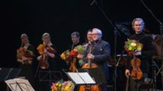 Впервые в Москве состоялся творческий вечер литовского композитора, театрального деятеля Фаустаса Латенаса. Он - постоянный соавтор постановок Римаса Туминаса в Академическом театре имени Вахтангова. Накануне вечера Римас Туминас получил почетную грамоту от Мосгордумы «За вклад в развитие культуры и искусства» и он же открывал концерт. На Новой сцене вахтанговского театра с участием знаменитых музыкантов: виолончелиста Давида Герингаса, пианистки Индре Байкштите. На вечере присутствовали представители посольства Литовской Республики в России. Ведущий концерта музыковед, писатель, юморист - Викторас Герулайтис перед каждым музыкальным выступлением рассказывал историю создания шедевра: - В Сонате для скрипки и фортепиано мы не услышим ни изящной сентиментальности, ни зажигательных танцев, ритмы которых нередко звучат у Латенаса, а услышим трагическую музыку 20 века. Первая часть начинается демоническим вступлением фортепиано, потом вступает скрипка, и начинается их диалог. Эта соната о том, что у человека нет настоящего времени, а есть только прошлое и будущее. Настоящим владеет Бог. На вечере прозвучали сочинения композитора: пьеса для фортепиано «Младенец» (посвящение Моцарту), струнный квартет номер 2 «Светлой памяти», пьеса для струнного квартета, соната для виолончели и фортепиано и три танца: «Самба», «Танго» и «Пасодобль». Завершился вечер пасодоблем для виолончели, фортепиано и струнного квартета в исполнении Давида Герингаса (виолончель), Индре Байкштите (фортепиано) и квартета «СART VIO». - Латенас начал вводить танцевальные ритмы в музыку спектаклей в начале 80-х годов. Старшие коллеги возмущались: «Что за странные танцы: танго, фокстрот, самбо?» Они отказывались принимать Латенаса в Союз композиторов Литовской РСФСР. Но Фаустас продолжал писать танцевальную музыку, потому что в ней много свободы, - рассказал ведущий концерта.