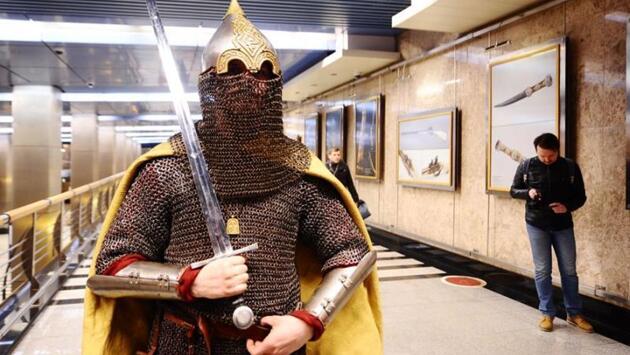 31 марта на станции метро "Выставочная" открылась экспозиция "Исторический музей приглашает", полностью посвященная 145-летнему юбилею Государственного исторического музея.На открытии у всех пассажиров подземки была возможность не только познакомиться с самыми яркими примерами экспонатов, но и сфотографироваться с настоящим дружинником, одетым по всем канонам XIV века. - Сегодня совместно с Историческим музеем мы открываем уже вторую выставку, - рассказал на церемонии открытия начальник Московского метрополитена Дмитрий Пегов. - Наши выставки пользуются большой популярностью. Московский метрополитен будет и дальше радовать пассажиров. Как рассказал директор музея Алексей Левыкин, выставка в метро отличается от остальных тем, что каждый день ее видят сотни и тысячи пассажиров, которых перевозит метро. - Между датой рождения музея и началом собственной истории метрополитена - очень короткий срок. В те времена, когда создавался музей, руководство Москвы уже думало о строительстве метро, которое было открыто в ХХ веке, - отметил директор музея. И станции метро, по словам Алексея Левыкина, - прямое отражение истории не только города, но и государства. Ее действительно можно почувствовать и увидеть, проезжая от станции к станции.