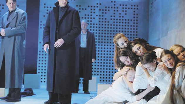«Кончились времена охоты на ведьм — теперь ведьмы охотятся на нас», — написано на баннере над входом «Бронной». Это утверждение-слоган актуально во все времена: и в эпоху маккартизма, когда драматург Артур Миллер написал пьесу «Суровое испытание», положенную в основу спектакля, да и сейчас, когда мы видим засилье абсурда, необъяснимых государственных решений и критическую озлобленность общества. Режиссер Сергей Голомазов, тонко чувствуя необходимость рождения подобного спектакля, решил разобраться в истоках того, что, по сути, является обыкновенным фашизмом, и пригласил к диалогу своих зрителей. В зале явственно пахнет горелым. «Прямо театр 5D», — шутят зрители рядом, ожидая начала действия. С опаской рассматривают деревянные декорации, которым так легко воспламениться (сценограф Николай Симонов), однако пламя здесь будет испепелять героев изнутри — пламя отчаяния и бессильного гнева. Гасят свет, и перед замершими зрителями появляются женские фигуры в белых одеяниях — полушепотом они исступленно произносят заклятия-заговоры, ворожат, приговаривают. По центру — главная героиня Абигайль Уильямс (Настасья Самбурская). Вот она смотрит в зрительный зал исподлобья, вот украдкой улыбается, опускает глаза, и в них чувствуется чуть ли не магическая сила. И в этой актерской улыбке отражено все: не будет ни жалости, ни пощады, ни страха. За мимикой актрисы любопытно наблюдать. Находится ли она на авансцене или притаилась где-то сбоку, подглядывая за происходящим, есть в ее опасной красоте что-то дьявольское. Даже удивительно, что на ее избранника Джона Проктора не действуют ни женские, ни колдовские чары, хотя в одной из первых сцен он все же не может устоять. Главную мужскую роль в спектакле Голомазов отдал фактурному актеру Владимиру Яглычу, поставив перед ним непростую задачу конкурировать как минимум с Ричардом Армитиджем, сыгравшим роль Проктора в постановке английского театра The Оld Vic, транслируемой два года назад на всех киноэкранах. Надо признать, конкуренция получилась достойная: Яглыч мастерски владеет актерским инструментарием, уверенно отыгрывая драматические сцены, где его герой предстает не только мужественным и импульсивным, но и трогательно сентиментальным. Вообще в спектакле собрался прекрасный актерский ансамбль, где каждый герой обладает собственным ярким характером. Фермера Джайлса Кори удивительно играет старейший артист «Бронной» Геннадий Сайфулин, преподобного Хэйла — Дмитрий Гурьянов, Самуэла Пэрриса — Андрей Рогожин, воплощение зла судью Готторна — Александр Никулин, беспокойную Энн Патнэм — Марина Орел, кроткую, но гордую Элизабет Проктор — Юлиана Сополева. На роль Ребекки Нэрс (основная женская роль второго плана) Голомазов назначил свою супругу, Веру Бабичеву, каждое появление которой приковывает зрительское внимание. Когда она появляется в предфинальной сцене — измученная, но не сломленная, с головой, посыпанной пеплом, в черном траурном платье, готовая идти на виселицу во имя правды и Бога, — становится действительно страшно: до чего доводят узурпаторы власти, самозваные вершители судеб лучших представителей человечества. «Почти документальная история» об абсурдном процессе, замешанном на мести отвергнутой девушки, процессе, охватившем Салем с 1692 по 1693 год, взята режиссером Голомазов