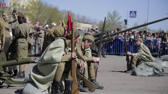 МИНСК, 7 мая. /Корр. ТАСС Лариса Ключникова/. Экспозиция, посвященная взятию Рейхстага в 1945 году, открылась в Государственном музее военной истории Белоруссии ко Дню Победы. Центральным экспонатом является штурмовое знамя, водруженное над Рейхстагом 30 апреля 1945 года воинами 50-й гвардейской Сталинской дважды Краснознаменной дивизии, ордена Суворова. Известно, что таких штурмовых флагов всего было изготовлено девять штук. Они были переданы воинским частям, которые готовились штурмовать главное здание третьего Рейха. "Штурмовой стяг был водружен не над куполом, а над одним из подъездов, рядом со знаменами других частей и соединений", - рассказал директор музея Сергей Азаронок. Знамя долгое время хранилось в музейных фондах, а позже перешло в экспозицию Государственного музея военной истории. По словам Азаронка, сотрудники музея готовятся подавать документы на присвоение знамени статуса историко-культурного наследия. Флаг помещен в капсулу и установлен на подиуме, крепится он на брусчатке, частично взятой из Берлина. На фоне знамени демонстрируются кадры документальной хроники взятия Рейхстага и фотоколлаж парада Победы в Москве 1945 года. Под ним расположены несколько поверженных немецких штандартов, а также осколки боевых снарядов. Одновременно в музее открылась и экспозиция "Помним. Гордимся!". Сотрудники учреждения культуры отмечают, что особенностью данного проекта является его "народный характер". На выставке представлены не только предметы, экспонаты из музейных фондов, но и семейные реликвии военных лет, которые передали ветераны войны, их дети, внуки и правнуки. Вскоре данная передвижная экспозиция будет показана в белорусском павильоне на ВДНХ в Москве и в МГУ на Воробьевых горах. В апреле 1945 года по решению политотдела 3-й ударной армии 1-го Белорусского фронта, первой оказавшейся в центре Берлина, из простого красного материала было изготовлено девять штурмовых флагов по количеству дивизий, которые входили в состав армии. Знамена были изготовлены по образцу государственного флага СССР из немецкого материала, взятого в одной из лавок Берлина. Звезда, серп и молот наносились от руки и через трафарет. В ночь на 22 апреля штурмовые знамена были вручены представителям стрелковых дивизий, в их числе штурмовой стяг, водруженный на крыше Рейхстага, ставший Знаменем Победы.
