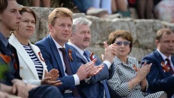 правительства Севастополя. После выступления посетители представления вместе с артистами а капелла спели главную песню города-героя — «Легендарный Севастополь». К исполнению гимна присоединились все почетные гости концерта, в частности, глава города Дмитрий Овсянников, председатель Законодательного собрания Екатерина Алтабаева, член Совета Федерации Ольга Трофимова. Овсянников поблагодарил выступавших артистов и отметил значимость концерта: «Я хочу сказать только одно — браво! Ваш талант никого не оставил равнодушным. Подобные концерты должны стать постоянной составляющей культурной жизни города. У творчества есть сила — оно способно объединять людей в любые времена». Ранее 9 мая в Севастополе прошло шествие «Бессмертного полка», в котором приняли участие более 50 тысяч человек. До этого состоялся военный парад. Вечером в городе состоится концерт с участием певицы Юлии Самойловой, приехавшей по личному приглашению Овсянникова.