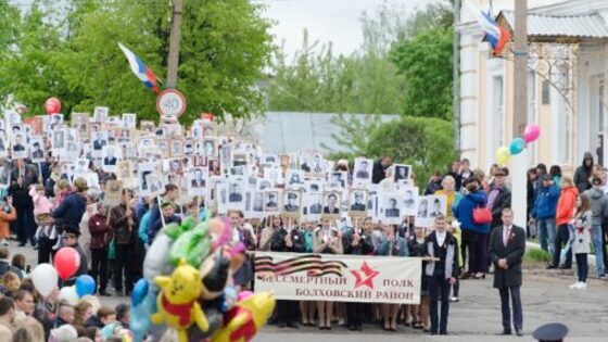 В городе Болхов Орловской области, как и во многих других населенных пунктах земного шара, состоялась акция «Бессмертный полк». На улицы вышли потомки героев, отдавших свою жизнь за мир. В руках у правнуков, внуков и детей портреты тех, кто сражался и делал все возможное, чтобы приблизить этот день Победы. Бессмертный полк впечатляет своим масштабом в этом году. Все больше людей присоединяется к шествию, чтобы отдать дань памяти. В небольшом Болхове с портретами близких вышли более 400 человек. (Фото Дениса Никишина). Около 16 тысяч орловцев прошли в строю «Бессмертного полка»