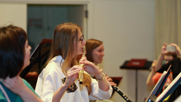 Вчера в Екатеринбурге в шестой раз прошла ежегодная акция «Ночь музеев». В этом году свои программы в рамках акции презентовали более 100 музеев из 70 населённых пунктов региона. Из всего многообразия площадок мы выбрали, пожалуй, самую интересную - «Большую ночную серенаду» в Свердловской государственной филармонии. IMG_0103 (74) – На самом верху - жгучие испанские музыкальные ритмы. Это зал фламенко. Фото: Александр Исаков. Филармония, действительно, попыталась в эту ночь удивить свердловчан. Храм музыки на один вечер превратился в большой интерактивный музей. «Вокально-тренажерный зал». Здесь гостям показали дыхательную гимнастику Стрельниковой. Фото: Александр Исаков В одной комнате - «Вокально-тренажерный зал», где под руководством профессионального хормейстера учат дыхательной гимнастике и распеванию. «Контактный музопарк». Весьма познавательная комната, в которой подробно объяснили назначение, историю и тонкости некоторых музыкальных инструментов. Фото: Александр Исаков В другой - «Контактный музопарк», где к вашим услугам валторна, кларнет, фагот, флейта, тромбон, английский рожок и другие музыкальные инструменты. Экскурсия в филармонии заканчивалась в «Зоне музыкального релакса» под чарующие звуки арфы. Фото: Александр Исаков Если устали – расслабьтесь в «Зоне музыкального релакса» под самые мелодии флейты и арфы. Ну и в этом году филармония впервые провела эксклюзивную экскурсию в оркестр – «В шкуре оркестранта». Каждый из пришедших оказался в «святая святых» – на сцене большого зала и занял своё место в настоящем симфоническом оркестре.