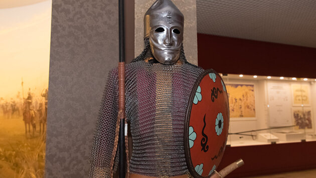 АСТАНА, 18 мая — Sputnik. Военно-исторический музей Вооруженных сил Казахстана был открыт в декабре 2015 года. Он хранит в своих стенах около 12 тысяч различных экспонатов, посмотреть на которые приходили десятки тысяч посетителей. В честь международного дня музея Sputnik Казахстан погрузился в историю подвигов батыров и покажет читателям то, что еще не видели казахстанцы. Однако для начала немного истории. Музей расположился в многофункциональном здании, построенном в 1998 году по архитектурному замыслу Нурсултана Назарбаева. Музей был открыт в День первого президента Казахстана в декабре 2015 года. Здесь же находятся концертный зал, зал временных выставок, в здании также разместились Центральный военный оркестр и Центральный ансамбль Минобороны РК. Сегодня в музее хранятся редкие кадры открытия, в церемонии которой принял участие глава государства. Нурсултан Назарбаев на церемонии открытия Военно-исторического музея ВС РК, архивное фото При входе в музей можно увидеть скульптурную экспозицию: в центре распложена фигура верховного главнокомандующего, который находится в окружении древних воинов и воинов современности. Кстати, с момента открытия музей был включен в реестр туристических маршрутов в Астане для посещения. Экспонаты Военно-исторического музея в Астане Далее посетители увидят зал вооруженных сил, который разделен на три части. Каждую часть, по словам экскурсовода музея Алии Сарсеновой, создавали совместно с действующими экспертами в различных сферах, которые и помогли правильно оформить экспонаты. Экспонаты Военно-исторического музея в Астане Если пройти в глубь зала, то можно увидеть настоящую парадную форму и шинель первого министра обороны РК Сагадата Нурмагамбетова. Экспонаты Военно-исторического музея в Астане Второй этаж музея переносит посетителей на сотни лет назад. Здесь неподалеку от входа можно увидеть экспозицию, найденную археологами в Мангистауской области, каменные скульптуры сарматского и тюркского периодов. Мастера того времени, чтобы увековечить память павших воинов, вырезали на камне оружие и экипировку. В самом зале, который охватывает сакский, тюркский периоды и время казахского ханства, представлены экспонаты, которые попали в музей от коллекционеров Ерлана Карина, Зейноллы Самашева, Алексея Андреева, Имангали Тасмагамбетова, Алексея Харламова, Айболата Кушкумбаева, Каймулла Ахметжан. Экспонаты Военно-исторического музея в Астане Среди знаменательных артефактов на взор представлены разных форм наконечники для стрел, тяжело-каркасные седла, различной толщины стремена (по стременам смотрели уровень воина), колчан со стрелами (тюрки хранили стрелы наконечниками вверх, потому что использовали тактильный метод во время битв), а также пластины от лямиллярных доспехов (состоял из 200 пластин), который могли заказать себе только состоятельные воины (на фото снизу). Экспонаты Военно-исторического музея в Астане В другом конце зала стоит кольчуга Айдарбек батыра Орисулы, который жил в конце XVI века в окрестностях нынешней Кызылординской области. Экспонаты Военно-исторического музея в Астане Кольчуга легендарного героя хранилась у одного из потомков, пенсионера Жеткергена Нургабилова в городе Арал, а позже была передана в качестве подарка в Военно-исторический музей Национального военно-