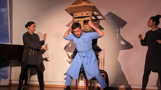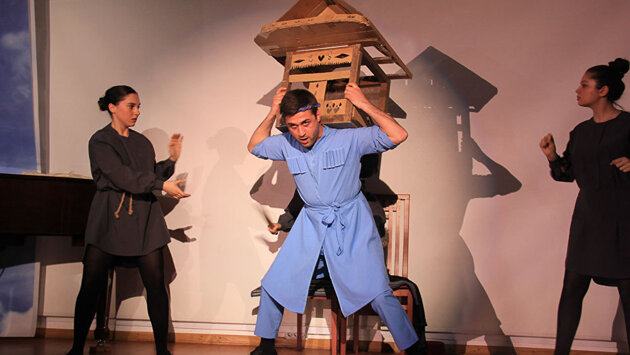 Корреспондент Sputnik Лев Рыжков побывал на спектакле и делится впечатлениями об увиденном. Про весь мир и про Абхазию Так получилось, что за одну неделю автор этих строк посмотрел сразу два спектакля по произведениям Фазиля Искандера. Первый назывался «Софичка» и был поставлен силами выпускников абхазской студии Театрального института им. Б. Щукина под руководством режиссера Елены Одинцовой. А вот спектакль "Джамхух – сын оленя" приехал из Санкт-Петербурга, где в Государственном институте культуры также прошли обучение актерскому мастерству студенты из Абхазии. И "Джамхух" — это и их дипломная работа, и, возможно, путевка в жизнь. Несмотря на то, что актеры – молоды, и все лучшее у них еще впереди, в активе у ребят есть уже четыре постановки. "Джамхух", по признанию автора постановки и руководителя курса Владимира Фунтусова, еще и главный их спектакль. В репертуарной «обойме» начинающих артистов есть и "Биография" Людмилы Разумовской, и "Белый Петербург" современного автора Николая Якимчука, и детский спектакль по сказке Сергея Михалкова "Зайка-зазнайка". Молодая абхазская труппа из Санкт-Петербурга уже успела поучаствовать в целом ряде региональных, межрегиональных, российских и международных театральных фестивалей и конкурсов. Однако наивысшим достижением на сегодняшний день стало вхождение в шорт-лист самой престижной российской театральной премии "Золотая маска". Однако в итоге в список номинантов ребята не попали.Премьера спектакля "Джамхух – сын оленя, или Евангелие по-чегемски" на сцене Дома национальностей И это, по словам их руководителя Фунтусова, только к лучшему, поскольку гарантирует отсутствие головокружения от успехов. Теперь ребятам есть к чему стремиться, есть стимул шлифовать мастерство. Выбор произведения для инсценировки – тоже не случаен. "Джамхух – сын оленя" — наш самый любимый, самый главный и самый драгоценный спектакль, — признался руководитель курса. - Этим мы обязаны прежде всего гению Фазиля Искандера – и не надо стесняться этих слов. Это произведение написано так, что многие из ребят узнают себя. Они иногда признавались в ходе репетиции: "Это же про нас! Про то, как мы не ходим на занятия!" И действительно – проза Фазиля Искандера и про человека, и про сражение дьявола и Бога. И как ни странно – и про весь мир, и про Абхазию». Как водится на спектаклях молодых актеров, в зале чувствовалось волнение. И было отчего заволноваться. Посмотреть спектакль пришли видные представители абхазской диаспоры Москвы и вдова Фазиля Искандера Антонина Хлебникова-Искандер. К тому же была незнакомая сцена. Без каких бы то ни было декораций, к тому же маленькая. Не сравнить со сценой в «Щуке», в которой хотя бы есть пространство. Питерским молодым артистам приходилось разворачивать свой спектакль на очень маленьких, почти кукольных подмостках. Но вот отзвучали торжественные слова, зал зааплодировал, и для молодых артистов настал момент истины.Премьера спектакля "Джамхух – сын оленя, или Евангелие по-чегемски" на сцене Дома национальностей Как перебороть робость И вот тут-то, как мне показалось, стало видно, что ребята переволновались. Нет, ошибок не было. Более того, очевидно было, что ребята делают все правильно, как учили. Но как раз заученность жестов и слов показалась очевидной. Она перетекала в некую механистич
