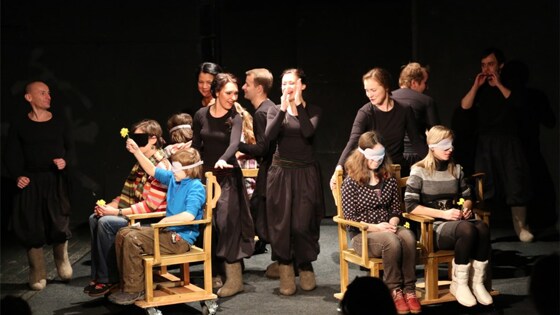 В постановке на сцене наряду с актёрами участвуют слабовидящие (слепые) зрители – создатели спектакля называют их воспринимателями. Да, они не видят действие и его развитие, костюмов, декораций к малороссийской повести. Мрачная история панночки и ведьмы, любви Левко к Гале предстаёт перед ними миром звуков, песен, речей, настоящий плеск воды и шум листьев деревьев. Тактильные ощущения помогают им понять, как страшная, чёрная, когтистая лапа кошки касается нежного тела панночки. Это полноправные участники действа, присутствующие на обеде у головы, вдыхая горячий аромат картошки, свежих огурцов, зелени, пробуя пирожки. Они всё время на сцене, сидят в специальных креслах, которые актёры время от времени передвигают, помещая зрителей из сада в украинские хаты, а потом обратно на берега заросшего пруда. Зрители зрячие тоже присутствуют на спектакле, одним из них была и я. Безусловно, необычно себя представить на месте слабовидящего человека, даже если закрыть глаза (что я пробовала сделать). В результате ты погружаешься в атмосферу звуков, исходящих с разных сторон, они окружают тебя, и тебя всецело затягивает атмосфера старинной украинской легенды – всё вокруг тебя оживает – ночные птицы, лай собак, скрежет дверей, певучая малороссийская речь. Ты теряешь ощущение времени и пространства, кажется, что всё будет длиться бесконечно. Фото: http://www.mospuppets.ru/performances/?perfomance=632 Спектакль “Майская ночь” – не единственный такой опыт Каролины Жерните на российской сцене. Каролина поставила сказку “Ежик и туман” в государственном театре кукол в Набережных Челнах. В ней участники попадают в сказочный лес, чувствуют шаги белки, зайца и медведя, которых можно даже потрогать! Сказку можно услышать, уловить её запахи и попробовать на вкус сладкое варенье и хрустящую морковку. В спектакле звучит живая музыка, игра на гитаре, дудочке. А два года назад в иркутском театре “Аистёнок” состоялась премьера спектакля “Калиф-аист”. Там маленькие и большие зрители смогли ощутить пряные запахи восточного базара, хлопанье крыльев аиста и волшебное слово “мутабор”, напечатанное на раздаточном материале шрифтом Брайля. Побольше бы таких постановок, ведь они помогают нам увидеть и понять ощущения и восприятие другого мира – очень интересного!