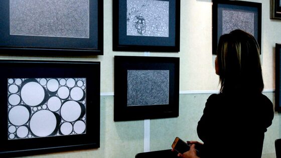 «Чтобы завлечь людей, художники придумали устраивать пьянки не только в день открытия выставки — на вернисаже, но и в день закрытия. Таким образом, экспозицию смотрят не 50 человек, а в два раза больше — 100» Александр Шабуров 28 июня в час дня состоялся финиссаж закрытие выставки Татьяны Сторожиловой В программу закрытия вошли встреча с художницей и фуршет. Выставка «БЕЗ ПРЕДМЕТА» – это первое публичное появление Татьяны Сторожиловой в роли художницы. Экспозиция подобрана из рисунков, которые больше двадцати лет ждали момента, когда их представят на публике. Камерная монохромность и абстрактность композиций погружают зрителя в уникальное состояние. Потому многие критики уже сошлись во мнении, что работы художницы обладают «камерным звучанием», мимо них легко пройти не заметив, но если вы сосредоточите свой взгляд на хитросплетении «кругов, линий и штрихов», то процесс созерцания затянется надолго. Всегда стремившаяся к искусству, прошедшая через разные формы самовыражения, такие как декоративно-прикладное искусство, Татьяна только сейчас, набравшись опыта, начала называть себя художником. Рассматривать ее художественный опыт можно во множестве аспектов, от непрофессионального или наивного творчества до современной абстракции. Эти работы сложно описать однозначно, они есть как выражение сложного внутреннего мира художницы, так и ее разнообразных пристрастий от американской культуры до Горького и Шолохова. Что странно, по словам самой авторки: она занимается абстракцией, но не признает русского авангарда. Финиссаж выставки состоялся в мультимедиатеке Департамента искусствоведения и социокультурных технологий по адресу одного из корпусов УрФУ — Екатеринбург, Ленина, 51, на четвертом этаже в аудитории 413а. Финниссаж — это торжественное закрытие выставки, которого удостаивается не каждый автор. Данная выставка участвовала в акции «Ночь музеев» от факультета искусствоведения и культурологии, где для нее было подготовлено специальное представление, созданное студентами Екатеринбургского Государственного Театрального Института по мотивам работ. В пространстве медиатеки оживил и динамизировал графические экспонаты выставки «Без предмета» Татьяны Сторожиловой пластический перформанс, создавший уникальный и глубокий синтез изображения и танца. Абстрактные плоские фигуры с рисунков ожили в пластике юных танцоров. Чёрно белая орнаментация обрела плотность и динамичность, люди-формы вступали во взаимодействия друг с другом. Хореографом-постановщиком выступила Юлия Исупова. И уже в этом, заполненном мультижанровым действом пространстве зрителей ожидала выставка абстрактных рисунков Татьяны Сторожиловой. Из самых примитивных форм, художница создала сложносочинённые завораживающие композиции. Первый финиссаж удался, как и первая выставка Сторожиловой в роли художницы абстрактного жанра. Нельзя не отметить заинтересованность зрителей в новом лице и оригинальную подачу материала. Надеемся, что такой динамичный старт подарит художнице ещё много вдохновения и станет зачином к длительной творческой карьере беспредметного искусства.