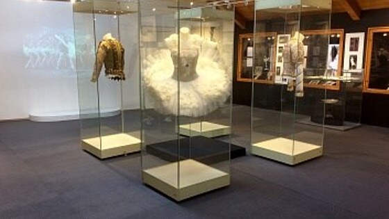 Премьера балета П.И. Чайковского "Лебединое озеро" прошла 20 февраля (4 марта) 1877 года в Большом театре в постановке балетмейстера Венцеля Рейзингера 140 лет назад, а в 1895 году балет был показан на сцене Мариинского театра в постановке балетмейстеров Мариуса Петипа и Льва Иванова, которая стала классической. На выставке представлены автограф партитуры балета и переложение «Лебединого озера» для фортепиано (совместная работа П.И. Чайковского и Н.Д. Кашкина), напечатанное 1890-е годы в издательстве «П.И. Юргенсон», московские афиши балета, фотографии первых исполнителей «Лебединого озера», сценические костюмы, по которым можно проследить эволюцию образов; фотографии и портреты танцовщиц, фарфоровые и бронзовые статуэтки, раритетные театральные сапоги «самого первого» принца Зигфрида (танцовщик Арнольд Гиллерт). Значительная часть выставки посвящена знаменитым русским и советским балеринам, исполнявшим на сценах Большого и Мариинского (в советское время - Ленинградский государственный театр оперы и балета им. С.М. Кирова) театров партии Одетты-Одиллии: Агриппины Вагановой, Веры Трефиловой, Ольги Лепешинской, Галины Улановой, Майи Плисецкой и Елены Рябинкиной.
