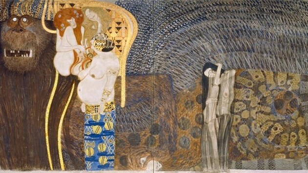 Увлекательный диалог австрийского художника Густава Климта с экспонатами античности будет сопровождать посетителей Нижнего Бельведера на протяжении лета и начала осени. Античность, археология и культура модерна очень сильно связаны – центральным местом экспозиции стало иллюстрированное Густавом Климтом издание “Разговоры гетер” Лукиана Самосатского, древнегреческого писателя, жившего около 120-180 гг. н.э. Во времена античности гетеры окрыляли фантазию учёных мужей, художников, поэтов. Их женская красота, чувственность, шарм вдохновляли на новые открытия, творческие удачи, свершения, победы. Расцвет быта и бытия гетер наглядно изображён на краснофигурной вазописи 5 века до н.э. Уже в новой редакции “Разговоров”, подготовленной венским писателем Францем Блеем в 1907 году, в 13 иллюстрациях, отражена красота “прекрасной эпохи” – эротически-чувственного модерна. Увлечение художником античностью отразилось и в росписи Бургтеатра, богатой аллюзиями на древние мифы о Дионисе и Аполлоне и фреской “Театр Таормина” – античного здания 3 века до н.э., построенного древними греками на острове Сицилия. Фото предоставлено пресс-службой галереи Бельведер Климт внёс “эфир античности” в эстетику дизайна, а ярким примером интерпретации греко-римской культуры служит расписной Бетховенский фриз (1902), вдохновлённый осмыслением Девятой симфонии Людвига ван Бетховена. Античные аллюзии работ Климта перекликаются с вазописью Древней Греции. В цикле росписи, посвящённой произведению немецкого композитора, мы видим огромную фигуру Тифона – чудовища, символизирующего огненные силы земли, горгон – олицетворение болезни, безумия и смерти. И, конечно, нельзя представить эту выставку без знаменитой “Афины Паллады” – властной женщины, царицы, бросающей вызов всему мужскому обществу, “демоницы Сецессиона” с символами господства женского над всем мужским миром – скипетром, сверкающим золотистым шлемом, скипетром и державой. Фото предоставлено пресс-службой галереи Бельведер