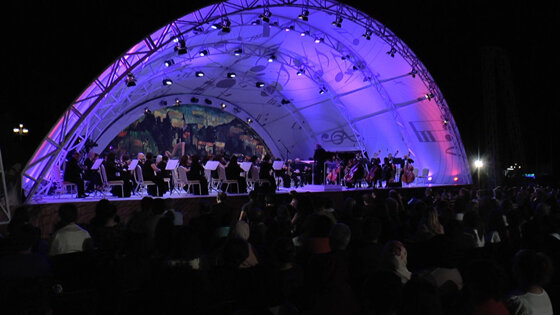На протяжении недели в Габалинском районе каждый вечер сотни восторженных зрителей слушают живую классическую музыку: такого нет ни в одном другом городе страны, и это стало уже летней традицией. Этим вечером на сцене в Габале выступил Азербайджанский государственный симфонический оркестр под руководством Рауфа Абдуллаева, на флейте солировал Массимо Мерчелли, а Егяна Ахундова, в свою очередь, провела мастер-класс на фортепиано. "Наш симфонический оркестр — уникальный коллектив. Это живое, потрясающее исполнение. Плюс — гениальная музыка, которую сегодня воспринимает почти каждый. Это не умрёт никогда", — сказал в интервью Sputnik Рауф Абдуллаев. Напомним, что вместе с концертами симфонических и филармонических оркестров на сцене в рамках фестиваля также звучит джаз, фламенко и современная камерная музыка. За время проведения музыкального праздника в нем принимали участие такие прославленные артисты, как Юрий Башмет, Хлоя Ханслип, Оксана Яблонская.