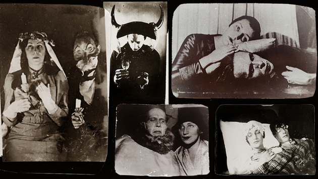 Несмотря на давление властей, художественная среда довоенного Ленинграда долго оставалась пространством эксперимента. Кружки и общества собирались на квартирах, между ними постоянно шел обмен информацией. Заглянуть в эти квартиры означало понять эпоху. Художницы «Мастерской аналитического искусства» Татьяна Глебова (1900–1985) и Алиса Порет (1902–1984) в 1927–1933 годах жили вместе в квартире Порет на Международном проспекте вместе с ее матерью и догом по имени Хокусавна. Среди постоянных гостей Порет и Глебовой были художники, архитекторы, поэты, писатели и музыканты разных поколений. Всего через несколько лет одни оказались на вершине, других выслали или расстреляли. Но тогда их объединяла домашняя театральная игра: «живые картины» (они называли их «фильмами») на исторические темы, в которых пары перемешивались, а гендерные роли ставились с ног на голову. Работа с инверсией и исторической дистанцией оборачивалась практикой самопознания, выявления в себе внутреннего Другого. Для одних участников это был разовый перформанс, для других — непрерывная традиция. На сохранившихся фотографиях — архитектор Юрий Щуко (1905–1960), автор послевоенного проекта Главного павильона ВСХВ — ВДНХ и создатель пропилеев московского Парка Горького; жена Натана Альтмана Ирина Щеголева (1906–1993); театральный художник, вхутемасовец Петр Снопков (1900–1942); живописец и график Павел Кондратьев (1902–1985); художник-керамист, график и театральный художник Рене О’Коннель-Михайловская (1891–1981); литератор и музыкант Ольга Лешкова (1883–1942), близкая футуристам и вместе с Михаилом Ле-Дантю входившая в группу основателей журнала «Бескровное убийство» (195–1916); драматический актер и физик Кирилл Струве (1906 — не ранее 1940); и, конечно, поэт Даниил Хармс (1905–1942). {gallery#246}