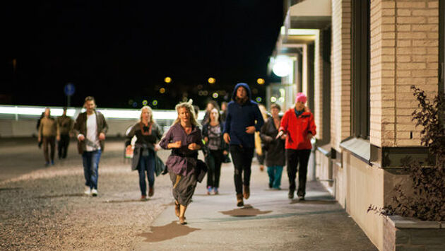 «Точка доступа» примечательна не только распахнутостью в город, но и созданием контента: фестиваль третий год подряд не только показывает зрителям театр в нетеатральных пространствах, но и продюсирует такие постановки. «Столкновение с бабочкой» по роману Юрия Арабова молодой режиссер из Новосибирска Сергей Чехов поставил в Доме композиторов на Большой Морской. Историю переворота – сбывшегося кошмара Николая II – разыгрывает на балконе одного из залов особняка актерский дуэт. Сергей Романюк, молниеносно перемещаясь с одной стороны балкона на другую, превращается из Николая II в Ленина и обратно (в альтернативной версии истории Арабова антагонисты оказываются союзниками), а бритоголовый Игорь Мосюк в женском корсете – Надежда Крупская, Александра Федоровна, поезд... Марево из флешбэков и кошмаров, припоминания и просьбы подать реплику – российская история мчится в «Столкновении с бабочкой» прямиком в сон-кошмар, в видение Ипатьевского дома, которое окажется пророчеством. Несколько смазывает впечатление финал – видео, длящееся бесконечно долго (металлический женский голос предупреждает, что спектакль заканчивается, продолжает заканчиваться и т. д.) и мало что добавляющее к самой постановке – примеру безупречного актерского дуэта в первую очередь. Принципиально иной опыт предлагает зрителям Радион Букаев в семейном квесте «Бабушкины очки». Спектакль, который играется в парке, где была обнаружена вагонетка из блокадного крематория, никак не обращается к теме истории и формально может быть сыгран в любом парке с колесом обозрения любого города, но почему-то здесь он звучит с особенной чистотой и нежностью. Парк наводняют самые разные бабушки и их помощники, которые предлагают зрителям (лучше всего – семье, но в компании близких друзей или любимых тоже хорошо) самые разные задания и считать разбросанные по парку очки. Конечно, в финале выясняется, что очки здесь были совсем ни при чем, а маленький поход вокруг озера оказывается большой возможностью ощутить настоящую близость. В финале зрители катаются на колесе обозрения – это тоже часть квеста, пройти который в одиночку просто невозможно. Одно из заданий «бабушки» – разыграть для детей в уличном кукольном театре «Теремок». Но даже на пару с профессиональной актрисой сделать это сложновато. Говорят, однажды на спектакль пришел «воскресный папа». «Сдать детей» на часик не получилось, и в финале у папы в глазах стояли искренние слезы. Совсем другой опыт городского квеста предложила арт-группа Toisissa tiloissa, в которую входит несколько десятков артистов и художников. Один из создателей «Охоты» – известный финский театральный критик Эва Кемпи. Формально «Охота» – возможность обнаружить в себе абстрактного волка и исследовать собственные инстинкты. Первая часть спектакля самая забавная. На тренинге зрители учились по-волчьи здороваться, обращать внимание на что-то и предупреждать о возможном своем нападении. После участников отвозили в район Малоохтинского парка, где волчья стая должна была поймать специально обученного актера-лося. До того как собраться в стаю, каждый участник на своей точке одиноко по-волчьи выл. Кто-то рассказывал, что на него смотрели как на юродивого, кому-то, как мне, подвывали местные собаки и дети, чем изрядно сбивали с толку. Обнаружив по вою так