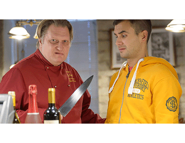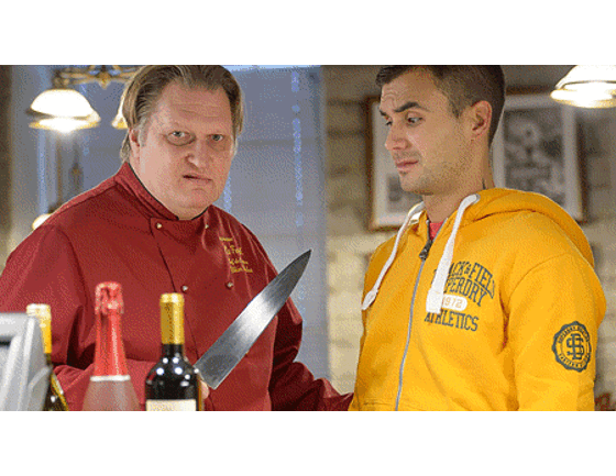 Кухня по-эстонски будет Kook (только над «о» должны быть по две точки, у нас в редакции таких букв не нашлось). На Kanal 2 вышло уже 6 сезонов! Причем Вику и Макса так и зовут: Вика (Маргарет Кодусаар, 1) и Макс (Кристиан Касеару, 2). Шефа сыграл актер Индрек Таалмаа (4). Фото: Kanal2.postimees.ee Фото: Kanal2.postimees.ee В Греции пока вышел один сезон, проект здесь называется «Да, шеф!». Последнего тут зовут Василис Коккорис (Иероклис Михаилидис, 4). А вот хозяйка ресторана (не Claude Monet, а Chez Philippe) - женщина! Афиной звать (кажется, это она справа, в исполнении Афины Валькони). Фото: megatv.com Грузинский GDS показал три сезона Mzareulebi («Повара»). Эка (Софо Гореашвили, 1) - не только арт-директор ресторана, но еще и художник-дизайнер. Влюбляется она не в Макса, а в Левана (Ника Кившидзе, 2), ну а владеет заведением Дата (Димитрий Схиртладзе, 3). Фото: youtube.com Фото: GDS TV В Словакии только начали смаковать приключения героев сериала «Повар». Молодой Михал (Сэмуэл Списак, 2) устроился работать в элитный ресторан в Братиславе... Ну тут и понеслось, конечно. А сердце ему разбивает красавица Лючия (Моника Хилмерова, 1). Фото: markiza.sk Фото: markiza.sk А как было у нас? Вика (Елена Подкаминская). Фото: канал СТС. Макс (Марк Богатырев). Фото: канал СТС. Виктор Баринов (Дмитрий Назаров). Фото: канал СТС. Дмитрий Нагиев (Дмитрий Нагиев). Фото: канал СТС.
