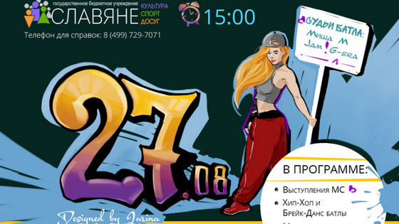 27 августа в Старом Крюково пройдут баттлы и творческие мастер-классы под девизом «За здоровый интерес!». Как сообщили в государственном бюджетном учреждении «Славяне» – одном из организаторов фестиваля – в программе фестиваля уличных субкультур запланировано выступление MC B, хип-хоп и брейк-дэнс баттлы, мастер-классы для детей и «тех, кто не в теме». Старт фестиваля на бульваре около корпуса 824 в 15.00. Принять в нем участие смогут все желающие старше 7 лет. Организаторы убедительно просят жителей не приходить на фестиваль с собаками.
