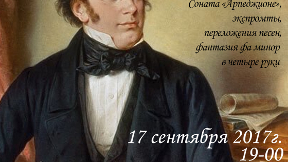 К 220-летию знаменитого композитора в клубе «Крылатский орнамент» готовят концерт. Праздничный вечер будет проходить 17 сентября. В программу войдут произведения Франца Шуберта, в том числе: Соната «Арпеджионе», фантазия фа минор, а также экспромты и переложения песен. Для слушателей выступят Зоя Гольцман и Марина Белая (фортепиано), а также Александра Дроздова (виолончель). Концерт пройдет в помещении клуба по адресу: ул. Крылатские Холмы, д. 26, корп. 2. Начало – в 19:00, вход свободный. Анна Щербинина Фото: клуб-галерея «Крылатский орнамент»