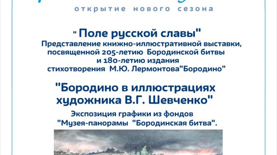 Участники «Лермонтовского общества» отдохнули и с новыми силами начали очередной сезон встреч. Они проходят традиционно в стенах библиотеки №76 им. М.Ю. Лермонтова. Первая встреча в рамках нового сезона состоится 16 сентября в Сокольниках. Библиотека презентует на встрече книжно-иллюстративную выставку «Поле русской славы», созданную к 205-летию Бородинской битвы. В нее входят книги авторства участников Отечественной войны 1812 года, включая простых солдат, художественная литература и книги по истории, посвященные тем временам. Музей-панорама «Бородинская битва» представил из своего фонда серию гравюр работы художника Владимира Шевченко. Посетители смогут увидеть новые книги и публикации о Михаиле Лермонтовке. А 9 сентября, в День рождения Москвы, здесь готовят яркое представление «Москва – город влюбленных». Будут прочитаны любимые стихотворения о Москве, и расскажут о личностях, посвящавших свои произведения столице.