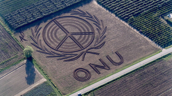 Ландшафтный художник и тракторист из Италии Дарио Гамбарин, который в июле нарисовал на поле под Вероной 135-метровый портрет Путина, создал новую картину, призванную задуматься о международном согласии. В июле "ОГ" рассказывала о портрете российского президента, который энтузиаст создал в преддверии саммита «Большой двадцатки». В этот раз художник нарисовал на поле в местечке Кастаньяро огромную эмблему Организации объединённых наций со вписанным внутрь круга "пацификом" - международным символом, мира и антивоенного движения. -Я поставил этот знак, чтобы привлечь внимание к тому, в чём заключается роль ООН - она должна поддерживать хрупкое международное равновесие и дипломатично, мирным способом регулировать мировые конфликты - в том числе, по ситуации в Северной Корее,- пояснил корреспонденту "ОГ" художник. Работу художник приурочил к празднованию 72-й годовщины со дня образования ООН. Картина, как и предыдущие, нарисована с помощью трактора и плуга на участке площадью 27 тысяч квадратных метров и хорошо видна с высоты птичьего полёта