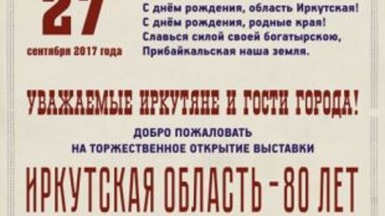 Выставка, посвященная 80-летию Иркутской области, откроется 27 сентября
