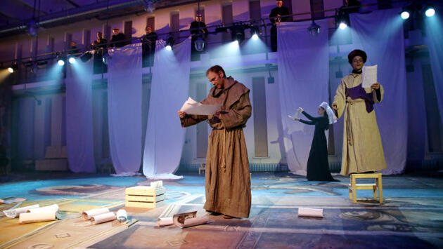 Уникальная премьера в музыкальном Театре имени Наталии Сац. Этот театр на проспекте Вернадского сам по себе - немного сказка: уникальный, абсолютно неповторимый и с точки зрения истории своего создания, и с точки зрения контентной - содержательной. В этих стенах никогда не переставала звучать музыка - очень разная, для разного возраста, но все же - обращенная именно к детям, души и сердца которых к ней наиболее восприимчивы. Попав сюда впервые, человек испытывает определенный шок - так все происходящее тут не похоже на спектакли других театров. Да, это особый мир. Мир театра, созданного великой Сац... За годы своей жизни театр ставил и классику, и, в общем-то, авангард. Но то, что можно увидеть в театре в скором времени - вообще нечто иное, особое. 5 и 6 октября тут состоится премьера оперы Владимира Мартынова "Упражнения и танцы Гвидо" - уникальный спектакль Георгия Исаакяна расскажет зрителям о... музыке. Да, о ней, музе и путеводной звезде театра - той и в таком виде, в котором мы сегодня ее знаем. Но подождите, а разве ноты были всегда? И разве всегда музыка была такой - как теперь? - Опера Владимира Мартынова как раз и рассказывает нам о том, чего сегодня многие не помнят или вовсе не знают, - объясняет режиссер Георгий Исаакян. - Когда-то не было ни нот, ни современной системы записи музыки, а это все придумал один человек - бенедектинский монах Гвидо Аретинский, который жил на рубеже Х-ХI веков. Театр построил постановку крайне необычно: все происходит в пространстве живописного цеха, там, где создаются декорации. И сама дорога в этот зал, проходящая через закулисье, превращается для всех зрителей в невероятное путешествие. Спектакль "Уроки и танцы Гвидо" будет показан в рамках Второго всероссийского фестиваля музыкальных театров "Видеть музыку". В его афише - более двадцати постановок, это оперы и оперетты, балеты и мюзиклы, представляющие все стили и направления, все достижения и поиски российского музыкального театра, которые будут представлены в столице до середины ноября.