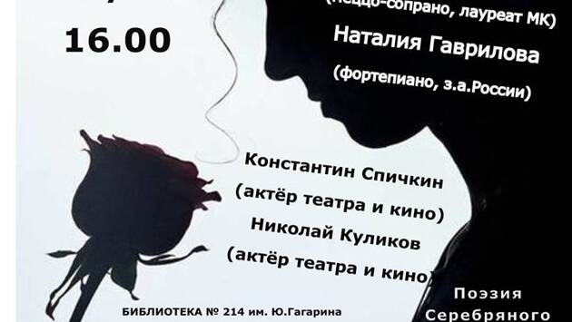 Спектакль «Вновь – гаснущий партер…» с захватывающим сюжетом можно будет посмотреть в учреждении культуры, расположенном на Проспекте Вернадского Постановка совмещает в себе сразу три творческих направления: театральное, музыкальное и поэтическое. Происходящее на сцене будет сопровождать музыка Чайковского и поэзия Серебряного века. Персонажи спектакля – начинающий художник и знаменитая актриса, оказавшаяся в эмиграции после революции в России. Они живут своей жизнью, борются с обстоятельствами и примиряются с печальной реальностью. Их трагическая история наверняка найдет отклик в душе каждого. Участие в спектакле принимают актеры творческого коллектива «Молодая антреприза»: лауреат международных конкурсов Диляра Муравицкая (меццо-сопрано), заслуженная артистка России Наталия Гаврилова (фортепиано), актеры театра и кино Константин Спичкин и Николай Куликов. Спектакль можно будет посмотреть 11 октября в библиотеке № 214 по адресу: пр-т Вернадского, д. 109. Вход свободный. Постановка рекомендована для зрителей, достигших совершеннолетия. Анна Щербинина Фото: http://bibliozao.ru/