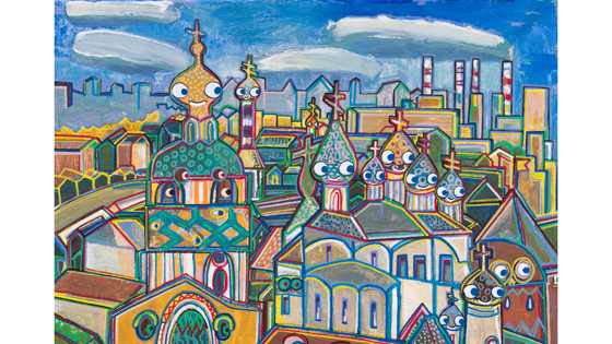 В качестве «хаха» для выставки Бартенев предлагает психоделические коллажи и картины, в традиционные сказочные сюжеты которых вклиниваются зеленые марсиане, недоуменно озирающиеся.