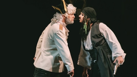 14 октября театр «У Никитских ворот» покажет первую премьеру сезона – спектакль «Остров сокровищ». Приключенческий роман XIX века в постановке выпускников театрального института Бориса Щукина доказал актуальность неоромантизма. Как учебные работы превращаются в настоящие спектакли и, почему быть пиратом значит быть свободным «Летидор» разузнал у режиссера постановки Родиона Вьюшкина. Фото: режиссер Родион Вьюшкин Родион Юрьевич, как появился «Остров сокровищ»? — Спектакль зародился как самостоятельный показ, а потом превратился в полноценную постановку. В Щукинском училище есть такая штука – самостоятельный показ – студенты актерского факультета представляют на суд педагогам свои собственные трактовки отрывков из произведений. На третьем курсе таких показов два: один – в октябре, а другой – в феврале. Зимний показ – последний самостоятельный для студента, дальше только дипломные работы. И всегда на самостоятельный показ выбирают какую-то – в хорошем смысле этого слова – шизофрению. Да, вот такая традиция в «Щуке»: всегда какая-нибудь хулиганка! На моей памяти – Шапокляк с Чебурашкой, «Гарри Поттер», где участвовали наши педагоги, виртуозно владевшие фехтованием на палочках. Помню даже «Омерзительную восьмерку». Заключительный самостоятельный показ 2017 года, который педагоги отметили как лучший за последние 10 лет, мои студенты сделали по Стивенсону. Тогда я понял, что надо развивать эту историю, и мы с ребятами сделали спектакль. За образами для персонажей далеко ходить не надо было, мы, как и Роберт Стивенсон, присмотрелись к своим друзьям. Есть известный факт: близкий друг писателя Уильям Хенли стал прототипом Джона Сильвера. Стивенсон даже написал Хенли письмо: «Признаюсь, именно зрелище твоей увечной мощи и властности породило Джона Сильвера… идея человека, способного повелевать и устрашать одним лишь звуком своего голоса, полностью обязана своим появлением тебе.» Фото: Надежда Пястолова Чем постановка «Острова сокровищ» в театре «У Никитских ворот» отличается от спектаклей в других театрах? — В постановке мало осталось от оригинального текста романа, но то, что мы привнесли своего, только пошло спектаклю на пользу. Безусловно, мы отталкивались от Стивенсона. Сюжет приключенческого романа – противостояние главных героев: юного Джима Хокинса и опасного пирата Джона Сильвера – остался центральной линией повествования. А вот артисты проецируют на зрителя новых героев, новых по своей подаче, родившихся уже в современной культуре. Таких, каких бы нарисовал себе наш современник, видевший «Пиратов Карибского моря», советские мультики 80-х и художественную трилогию Владимира Воробьева. Работая с актерами, я всегда требую: «Смотрите мультики!». Объясню почему. Наверное, многим знакома такая вещь как актерские этюды, самые известные на тему животных: когда ученикам дают задание: сходить в зоопарк и «принести оттуда зверя». Так вот, я своим студентам даю задание – смотреть мультики по одной простой причине: мультипликационные герои ограничены только фантазией автора, они не подчиняются законам физики, но имеют четкие поведенческие линии и оценки, которые именно прописаны и сыграны мультяшно. Главный герой нашей постановки становится в каком-то смысле заложником предлагаемых обстоятельств. Фото: Надежда Пясто
