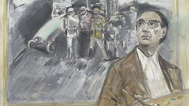 Прежде чем начать разговор об отдельных представленных здесь картинах Лабаса, я бы хотела, во-первых, обратиться к зрителям, которые придут на выставку: не ищите в этой серии ни политических, ни исторических выводов. Их здесь нет. Художник чувствует эпоху, состояние исторического момента. И стремится передать эмоциональный накал того времени, образы которого преследовали его всю жизнь. Во-вторых, я хочу рассказать тем, кто не знает, что Лабас прошел очень хорошую живописную школу — от академизма (он окончил Императорское Строгановское художественно-промышленное училище) до авангарда (он учился во Вхутемасе). Студентом он бывал в Музее нового западного искусства, где хранились коллекции Щукина и Морозова, и импрессионисты, Сезанн, Ван Гог, Дерен, Пикассо, Матисс, по его словам, «произвели огромное впечатление», тем более что рассказывали о картинах сами коллекционеры.