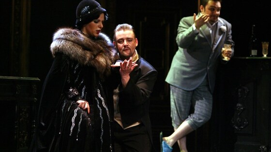 Этот спектакль Юрия Александрова я никогда раньше не видел, но ощущение дежавю создалось сразу и весьма отчетливо. Так может быть лишь тогда, когда увиденное всецело совпадает с твоим собственным идеализированным представлением о том, что ты в итоге и увидел. Постановка не новая, но довольно молодая: в этом году ей исполнилось 4 года, а в 2014-м она была удостоена высшей театральной премии Санкт-Петербурга "Золотой софит". Знакомство со спектаклем в Москве – еще одно убедительное свидетельство в пользу того, что эта награда нашла своего обладателя явно заслуженно! Собственное представление о чем-либо – категория, как правило, многозначная. В силу этого нынешнее неожиданное дежавю в отношении петербургской "Летучей мыши" возникло и как новый театрально-эстетический срез, и как совокупность традиционных подходов типично российской музыкально-комедийной ментальности. Эта постановочная версия весьма элегантно и необычайно вдумчиво переводит стрелки с венского бала на бал петербургский. И в этом режиссеру Юрию Александрову, создавая атмосферу спектакля нарочито минималистичными, но реалистично-действенными средствами, вторит Вячеслав Окунев, который триедин на сей раз в качестве сценографа, художника по костюмам и художника по свету. Фото: Санктъ-Петербургъ Опера Стартовая база для такого предприятия – широко известное, можно сказать, "народное" русскоязычное либретто Николая Эрдмана (разговорные диалоги) и Михаила Вольпина (тексты музыкальных номеров). При этом оригинальные характеры и ситуации немецкоязычного либретто Карла Хафнера и Рихарда Жене, легшего в основу бессмертной венской оперетты Иоганна Штрауса, новая пьеса переосмысливает несколько в ином (импровизационном) ключе. Впрочем, и оригинальное либретто не оригинально, ибо тянет за собой шлейф еще двух источников – французского парижского водевиля Анри Мельяка и Людовика Галеви "Новогодний вечер" (1872), а также породившего его немецкого берлинского фарса Юлиуса Родериха Бенедикса "Тюремное заключение" (1851). Премьера "Летучей мыши", едва ли не самого харизматичного образца венской классической оперетты, состоялась в театре "Ан дер Вин" в 1874 году. И то, что сегодня для нас классика, тогда было вполне современным, хотя и не на злобу дня: в этом опусе нет ни сатиры, ни пародийности, а есть лишь брызги шампанского, хорошее настроение и пленительная музыка, словно нитями люрекса пронизанная венским вальсом. Что ж, как же это, в сущности, по-венски: развлекательность ради самой развлекательности – фееричной и ослепительной, в чем-то отсылающей даже и к традициям итальянской оперы-буффа. Фото: Санктъ-Петербургъ Опера Милая, добрая оперетта! За это мы тебя и любим! Любим за веселый маскарад с переодеваниями. Любим за "чудесное", словно наваждение, взаимное неузнавание хорошо знающих друг друга по сюжету персонажей. Любим и за негодующее взаимное "обличительство" фривольных, легкомысленных поступков, неизбежно завершающихся примирением сторон и налаживанием отношений в развитии, как правило, не одной сюжетной линии. И в русской адаптации "Летучей мыши" – ведь то же самое! Это линия супругов Генриха Айзенштайна и Розалинды, с удивлением встречающей на балу своего отправившегося в тюрьму мужа, а также линия взаимоотношений их горничной Адели, мечтающей стать актрисой, и дирек