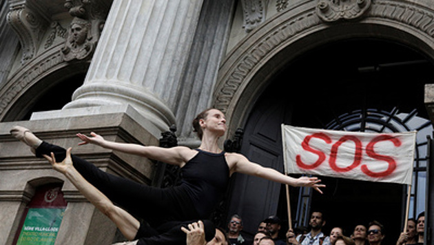 Искусство и уличный протест прекрасно сочетаются друг с другом. Это доказали артисты Муниципального театра оперы и балета в Рио-де-Жанейро, где не выплачиваются зарплаты с марта текущего года. Во вторник, 31 октября, балерины и музыканты исполнили несколько номеров прямо на ступенях театра. В последние месяцы из-за сложной финансовой ситуации коллективу театра пришлось убрать из репертуара ряд ключевых постановок, в том числе балет "Лебединое озеро". Нынешний митинг-концерт не первый. В мае артисты также выступали против задержки зарплат, но их увещевания так и не были услышаны. Как выглядят протестующие балерины — смотрите в фотогалерее ТАСС.