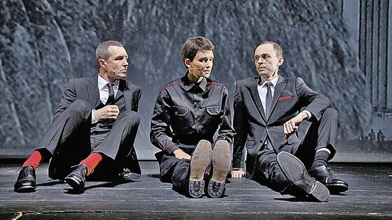 «Светлый путь. 19.17» Александра Молочникова в МХТ К 100-летнему юбилею революции в МХТ, почти как в старые времена, приурочили «датскую» премьеру: «Светлый путь. 19.17». Но если раньше такую постановку доверили бы только заслуженным орденоносцам, то сегодня постановщик — совсем молодой режиссер Александр Молочников. Рассказывает Ольга Федянина. «Молодой» сегодня необязательно значит «начинающий»: «Светлый путь» — уже третья премьера режиссера в МХТ (хотя и дебют на основной сцене). Во всех трех спектаклях Молочников ясно обозначил свой режиссерский интерес: большие исторические события и большие исторические фигуры, увиденные глазами современного человека. И до сих пор в его работах режиссерская оптика была важнее сюжета: она создавала не столько портрет ушедшей исторической эпохи, сколько портрет вглядывающегося в нее автора, молодого человека, современного, ироничного, лишенного почтения к авторитетам и книжному знанию, но готового прислушаться и к тем и к другому. Именно этому молодому человеку и его взгляду МХТ поручил юбилейную постановку на тему, которая когда-то вызывала сильнейшую скуку, а сегодня вызывает почти такую же растерянность. И снова все решает не тема, а ракурс. Русская революция у Молочникова сродни, с одной стороны, пафосным телешоу, с другой — голливудской межпланетной фантастике. Ее главные манипуляторы — Ленин (Игорь Верник), Троцкий (Артем Соколов) и Крупская (Ирина Пегова) — то ли три шоумена в студии, то ли три стража Матрицы, которые превращают живых людей в кордебалет управляемых киборгов. История о том, как простой мужик (Артем Быстров) влюбился в балерину (Виктория Исакова), пошел за водичкой, обрел вместо сердца пламенный мотор и оказался на площади перед Зимним, на фронтах Первой мировой и в полях Чевенгура,— это цепочка талантливо инсценированных скетчей, воспроизводящих революционную манию искусственного формирования человека и жизни. Соединяют эти скетчи хорошо подобранные художественные цитаты и один повторяющийся мотив: тот, кто имеет лицо и имя, всегда проигрывает шеренге. И не важно, будет ли человек сопротивляться, как придворный певец (Алексей Вертков), бежать впереди толпы, как конформистская богема (Роман Феодори и Павел Ворожцов), или пытаться приспособиться к коммунальному террору, как старорежимная тетка с локонами (Дарья Юрская). Даже машина, превращаясь обратно в человека (Коллонтай — Паулина Андреева), гибнет. А то, что балерины могут ходить строем не хуже солдат,— одна из самых выразительных пластических метафор спектакля. Вопрос о цене, значении и месте революции в мировой и национальной истории у Молочникова упразднен, потому что «революция» здесь даже не манипуляция, а иллюзия, галлюцинация, лубочное шоу. Самая пока что уязвимая его часть — это диалоги, которым периодически не хватает то легкости, то объема, то скорости: возможно, в спектакле еще должна произойти послепремьерная утряска. Хотя бы нескольких отдельных слов требует сценическое пространство, созданное известным архитектором Сергеем Чобаном в соавторстве с Агнией Стерлиговой. «Светлый путь. 19.17» — театральный дебют обоих. Успешно работающим современным архитекторам оказалось интересно «поиграть» по законам театра, и театр от этого выиграл чрезвычайно. Сценографы идеально вписали в полукруг мхатовског
