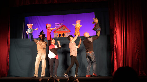 В эту субботу, 11 ноября, в Театре юного зрителя "Саби" состоялась премьера спектакля "Три поросенка". Режиссер-постановщик — народная артистка Северной Осетии Зара Плиева. Главные роли "исполнили" народные артисты республики Алла Гаева, Владимир Сланов и Артур Тедеев. Спектакль вызвал большой ажиотаж и руководством театра было принято решение сыграть премьеру два раза. Не растерять "ветер под крыльями" — Спектакль "Три поросенка" мы сделали очень быстро, на одном дыхании. Мне очень приятно, что к премьере такой интерес. Думаю, что наши юные зрители будут очарованы — спектакль получился очень веселым и музыкальным. Театр "Саби" Для меня очень важно не растерять все то, что сделал мой предшественник Владислав Колиев. Все помнят, что Владислав пришел на эту должность в крайне непростой для театра период, и ему удалось сделать очень многое за время своей работы здесь. Для меня очень важно не растерять "ветер под крыльями", который дал Владислав Колиев театру. ТЮЗ — площадка, на которой у ребенка формируется первое впечатление об искусстве — Я убежден, что Театр юного зрителя в нашей республике, который славится своей богатой культурой, сложившейся, в том числе, благодаря многонациональности и многоконфессиональности, может сделать большой вклад. Что для этого нужно? Внимание на всех уровнях. Театр "Саби" Театру нужно помогать и я имею ввиду не столько финансы, сколько понимание того, что это та площадка, на которой у ребенка формируется первое впечатление об искусстве, ведь для многих наших зрителей это первый поход в театр. Это также важно, как и первый урок в школе, и как первая любовь, и как первые поступательные шаги, которые делает человек в обществе. И хорошо, чтобы человек жил в культурном обществе и соответствовал этому обществу. Мы делаем все, чтобы наши дети были счастливы — Сейчас наш наработанный творческий потенциал велик, мы скопили очень многое и если все это мы сможем начать представлять зрителю, то я уверен, что мы покажем замечательные результаты. Эти результаты измеряются не столько прибылью, за счет которой мы можем поднять зарплату нашим актерам, которые, к слову сказать получают очень мало, но при этом честно служат. За что им большое cпасибо. Актёр "Саби" работает прежде всего из-за того, чтобы маленький зритель, в которого он вкладывает светлое и доброе, никогда не стал преступником, вором, обманщиком. Это дети, через которых в будущем будет развиваться культура, наука, образование и патриотизм, который нам сейчас так необходим. Мы делаем все, чтобы наши дети были счастливы и в культурном и духовном плане. Театр "Саби" Человек, воспитанный в любви, никогда не будет агрессивным и подлым — Буквально сегодня я увидел фотографию с детьми, которые во время войны точили на станках снаряды и автоматы и рядом с ней была подпись: "Вот это и есть наша золотая молодежь". Меня пронзила простота и истина этой мысли, ведь золото молодежи не в их материальных благах, а в том убеждении, что он родился в лучшей в мире стране. И неважно, чилиец он, якут или австралиец, осетин или русский. Давайте будем любить свою страну, свою культуру и я убежден, что человек, воспитанный в этой любви, никогда не будет агрессивным и подлым.