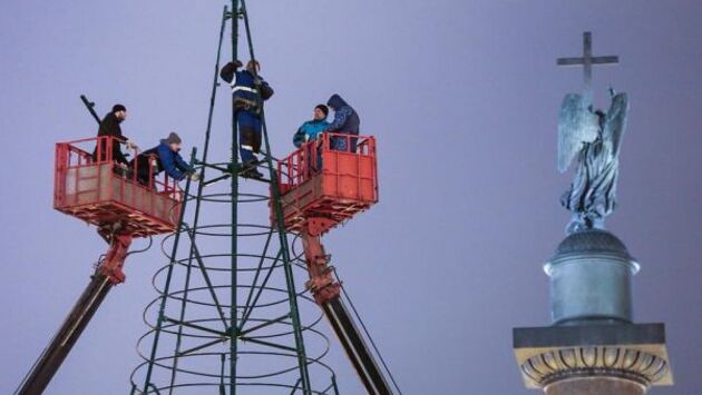На Дворцовой площади устанавливают главную новогоднюю елку