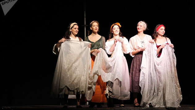 Корреспондент Sputnik Лев Рыжков побывал на премьере и делится впечатлениями. Sputnik, Лев Рыжков Серьезный экзамен Для начала – общеизвестные факты. Группа абхазских студентов четыре года назад была направлена для обучения в престижнейший Щукинский театральный институт. Собственно, это произошло впервые в истории. Такого не было даже во времена СССР. Тогда театральных актеров обучали в Тбилиси. На родине на молодых актеров возлагают большие надежды. Их ждут и в театре русской драмы, и в абхазском театре. "Кьоджинские перепалки" — это не просто веселая комедия о нравах предместья. Для абхазских студентов этот шедевр итальянской сцены XVIII века – оказался еще и своего рода тестом на профпригодность. Ведь посмотреть спектакль в этот ненастный ноябрьский московский вечер пришли не только обыкновенные зрители, но и профессионалы театра. Например, из Сухума приехал директор Русдрама Ираклий Хинтба. Автору этих строк еще до спектакля он сообщил, что особых творческих прорывов от студентов не ожидает. Был настроен снисходительно. Между тем в зрительном зале наблюдался настоящий аншлаг. Свободных мест просто не было. Многие зрители усаживались на приставные стульчики в проходе. Автор этих строк и раньше бывал на спектаклях абхазской студии – например, весной этого года смотрел спектакль "Софичка". Но такой аншлаг видел впервые. Спектакль "Кьоджинские перепалки" в исполнении студентов Щукинского училища Импровизационный отрыв Но вот прозвенел третий звонок. Свет в зале погас. Началось. Уже после спектакля Аманда Кварацхелия – исполнительница одной из главных ролей – призналась автору этих строк: "С началом мы пока что провисаем, но надеюсь, что с каждым спектаклем будем набираться все больше смелости, пока окончательно не раскрепостимся". Я бы не сказал, что начальная сцена – это некий прокол. Это – сложная по композиции сцена масштабной женской ругани. По существу и по напряжению – почти батальный эпизод. Просто это сцена входа. Своего рода шлюз между реальной жизнью и сценическим представлением. И да – сначала не все понятно — кто эти женщины, почему вдруг ругаются? Зритель сосредоточенно сидит в кресле, пытается понять. Но потом, уже где-то со второй сцены, понимание приходит. И зритель уже смеется. И раскрепощаются не только актеры, но и сами зрители. А почему? Потому что абхазские ребята, кажется, впервые набрались смелости импровизировать. Практически каждый актер в труппе в какой-то момент отходит от канонического текста и пускается в импровизационный отрыв. Чемпионом по импровизациям я бы назвал Инала Иналха (исполнителя роли Фортунато). Его герой – очень агрессивный и, как бы сказали через двести лет после эпохи барокко, пассионарный человек. Он говорит нечленораздельно. И вот тут автор этих строк буквально "завис", задавшись вопросом: "А как это ему удается?" Ведь такую кашу во рту – еще попробуй изобрази. И притом герой Инала Иналха бормочет отнюдь не бессмыслицу. Если прислушаться к потоку его комической, сумбурной речи, то из нее можно вытянуть осмысленные слова. И подобные затейливые (и разнообразные) импровизации встречаются в спектакле повсеместно. Как на хорошем джазовом концерте, когда каждому музыканту дают возможность исполнить соло. В общем, переполненный зрительный зал искупал молодых абхазских артистов в оваци