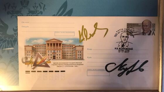 В Московской государственной художественно-промышленной академии им. С. Г. Строганова, расположенной в районе Сокол, прошло гашение первого дня конверта с оригинальной маркой, посвящённого 150-летию со дня рождения архитектора Московского Центрального Ипподрома И.В. Жолтовского. В мероприятии приняли участие и.о. ректора академии Сергей Курасов и заместитель директора Департамента по финансовому бизнесу Константин Бейлин, сообщает официальный портал вуза mghpu.ru. Торжественное гашение состоялось на фоне росписи одного из ведущих современных молодых художников России Егора Кошелева, посвященной выбору пути художника. Роспись была создана в 2015 году к 190-летнему юбилею академии. На конверте с оригинальной маркой изображены портрет И.В. Жолтовского, на основном изображении — инструменты художника и здание Московской государственной художественно-промышленной академии имени С.Г. Строганова. Его тираж – 1 млн рублей. Он поступит в продажу в отделения Почты России. Композиция росписи состоит из трех частей. На первой изображены совсем юные художники, которых приглашают войти в двери академии, где они учатся и реализуют свои таланты. В центральной части композиции - учебная аудитория (натурный класс), где три натурщицы олицетворяют разные виды искусства. Мы узнаем их по атрибутам: циркуль и макет здания академии – атрибуты архитектуры, фигурами по бокам представлены живопись и скульптура. Среди наставников студенчества три портретных образа самых известных профессоров академии: живописец Михаил Врубель, скульптор Георгий Мотовилов и архитектор Иван Жолтовский. Третья часть композиции – студенты, покидающие стены вуза и выходящие в свободную профессиональную жизнь. На них напутственно смотрит сам граф Сергей Григорьевич Строганов, изображенный на старинной каменной стеле. Оттиск штемпеля специального гашения первого дня можно поставить в отделении Почты России (101000, Мясницкая улица, 26 г.Москва). Стоит отметить, что почтовые знаки, погашенные в день их выпуска, приобретают дополнительную филателистическую ценность и пользуются большим спросом среди коллекционеров. «Очень рад, что конверты с изображением знаменитого архитектора и одного из старейших в России художественных вузов – академии имени Строганова можно будет приобрести в отделениях Почты России. Ведь это еще один способ популяризировать историю и вызвать дополнительный интерес к великим деятелям нашей страны», – прокомментировал данное событие глава управы района Сокол Сергей Бахров.