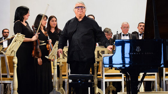 БАКУ, 24 ноя — Sputnik, Кямаля Алиева. Фархад Бадалбейли – живая легенда, гордость Азербайджана, сделавший многое для своей страны.Выступление профессора Бакинской музыкальной академии Джейран Махмудовой Об этом сказала профессор Бакинской музыкальной академии (БМА), музыковед Джейран Махмудова на предъюбилейном концерте народного артиста Азербайджана, ректора Бакинской музыкальной академии Фархада Бадалбейли. Концерт прошел на высоком уровне в Азербайджанской государственной филармонии, сообщает Sputnik Азербайджан. На вечере присутствовали общественные деятели, известные персоны мира культуры и искусства, студенты и поклонники творчества пианиста. Маэстро решил отметить свой юбилей, как и положено музыканту, на сцене. Бадалбейли из-за напряженного графика работы редко удается радовать поклонников своими выступления, поэтому данным концертом музыкант решил сделать подарок не себе, а своим зрителям.Дирижер Эйюб Гулиев (справа) и народный артист Азербайджана Фархад Бадалбейли Как только солисты Азербайджанского государственного симфонического оркестра имени Узеира Гаджибейли вышли на сцену, за ними последовали заслуженный артист Азербайджана, президентский стипендиат, дирижер Эйюб Гулиев и виновник концерта Фархад Бадалбейли, которых публика поприветствовала бурными аплодисментами. Вначале гостям был представлен Концерт для фортепиано с оркестром на арабские темы Фикрета Амирова и Эльмиры Назировой.Выступление заслуженных артисток Азербайджана Фариды Мамедовой и Сабины Асадовой На концерте также выступили заслуженные артистки Азербайджана Фарида Мамедова и Сабина Асадова, которые исполнили известное сочинение юбиляра "Аве Мария", а после в сопровождении заслуженной артистки Азербайджана Илахи Садыгзаде — композицию французского композитора Клода Дебюсси "Испанская песня". Этот концерт был знаменательным не только для Бадалбейли, но и для Эйюба Гулиева, который впервые выступал на одной сцене с юбиляром. Гулиев заявил, что пианист – живая легенда, выдающийся музыкант, музыкальный бренд Азербайджана, поэтому для него большая честь выступить на мероприятии, посвященном юбилею Бадалбейли. "Мне вдвойне приятно, что предложение выступить с Фархадом муаллимом на одной сцене поступило именно от него. Мы исполнили произведение Фикрета Амирова. Я считаю, что выбор был вполне логичен, потому что в этом году мы также отмечаем 95-летие Амирова. Фархад муаллим ценит азербайджанскую культуру, композиторов, исполнителей, которые работали на благо нашей страны", — сказал Гулиев.Концерт народного артиста Азербайджана Фархада Бадалбейли. Дирижер – Эйюб Гулиев Дирижер отметил, что для него каждая встреча с Фархадом Бадалбейли была большой радостью и честью. При общении с ним он не испытывал никакого возрастного различения, так как юбиляр всегда умел найти общий язык со всеми музыкантами, студентами. "От имени всех преподавателей и студентов, хотя до его юбилея остался еще месяц, поздравляю Фархада муаллима и желаю здоровья и благополучия. Каждый его концерт для нас — большой праздник", — сказал Гулиев.Фархад Бадалбейли выступает в сопровождении симфонического оркестра под управлением дирижера Ялчына Адигезялова В завершение концерта Бадалбейли вновь вышел на сцену, только в этот раз уже симфоническим оркестром у