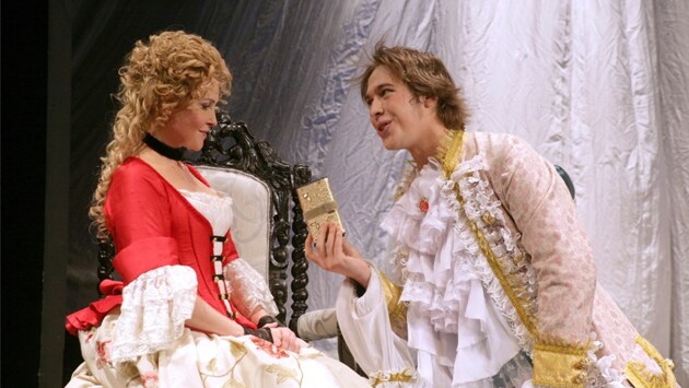 Успех акимовцев закономерен. Но не потому лишь, что комедия по нынешним временам жанр сверхвостребованный. От этого самой комедии вреда как раз больше, чем пользы – поток наскоро сколоченных непритязательных поделок половодьем разливается по отечественной сцене, и обнаружить в его волнах подлинно золотую рыбку удается не часто. А вот в неводах питерской Комедии всегда бьется рыба исключительно первой (она же, как известно, и последняя) свежести. Розаура - Заслуженная артистка России Елена Руфанова, Дон Альваро - Заслуженный артист России - Владимир Миронов. Фото: Театр Комедии имени Н.Акимова "Хитрую вдову" акимовцы привозят в столицу не впервые, поскольку московская публика любит этот спектакль не меньше петербургской. Правда, пьесы с таким названием у Карло Гольдони нет, есть "Один из последних вечеров карнавала", ставший, если можно так выразиться, финальным аккордом золотого периода в драматургической карьере великого венецианца. Татьяна Казакова поставила этот спектакль к 80-летию возглавляемого ею театра, но наблюдая за происходящим на сцене, трудно поверить, что спектаклю уже почти 10 лет. Все так же легка на ходу союзница любви – гондола (сценография Александра Орлова), все так же восхитительны ренессансные костюмы (созданные по всем правилам искусства Ириной Чередниковой), и главное, так же искренни и азартны актеры, раскручивающие у нас на глазах старую, как мир интригу. Темпераментная вдовушка в исполнении Елены Руфановой не просто хитра – она хочет жить по своим правилам: один раз все уже решили за нее, выдав замуж за богатого старика, второй раз Розаура намерена отдать руку, сердце и состояние лишь тому, кого сочтет достойным ее даров. Актриса с блеском демонстрирует, как на практике можно решить задачу, которую приходится хоть раз в жизни решать каждой женщине – примирить жаждущее великой любви сердце со строящим трезвый расчет разумом, устроив свое счастье настолько прочно, насколько это вообще возможно в нашем непрочном мире. Панталоне Деи Бизоньози - Народный артист России Юрий Лазарев, Доктор Ломбарди - Александр Корнеев. Фото: Театр Комедии им. Н.Акимова В ряду не менее известных драматургов-современников Гольдони считается признанным знатоком человеческих душ – не зря же он с таким рвением реформировал старую добрую комедию dell arte. Его персонажи – столько же маски (при всей своей изысканно-театральной условности), сколько и люди из плоти и крови. Гольдони щедро дарит актерам материал вполне достоверных характеров и акимовцы используют его даже не на 100, а на 150 процентов. Андрей Толшин (лорд Рунбиф), Виталий Кузьмин (мсье Лебло), Владимир Миронов (дон Альваро де Кастилья), Дмитрий Лебедев (граф Боско ди Неро) и Юрий Лазарев (синьор Панталоне деи Бизоньози) – кавалеры, один харизматичней другого – несут заряд такой всепобеждающей витальности, что у прекрасной половины зала просто дух захватывает, а менее прекрасная получает весомый повод для ревности. Арлекин - Александр Матвеев, Месье Лебло - Виталий Кузьмин. Фото: Театр Комедии имени Н.Акимова В "Драконе", если разобраться, тоже бушует карнавальная стихия, но этот праздник сумрачен, чтобы не сказать мрачен. Евгений Шварц известен своими сказками для театра, но в этой пьесе страшной реальности гораздо больше, чем собственно сказочного волшебства, да и финал ее 