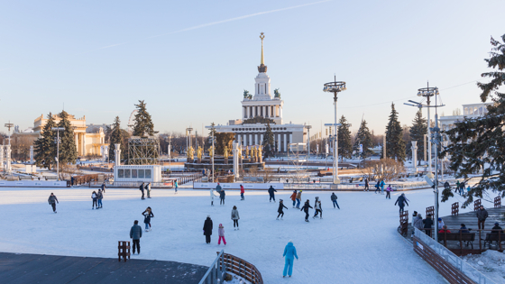 В пятницу в Москве началась зима, а вместе с ней открылся каток на ВДНХ.