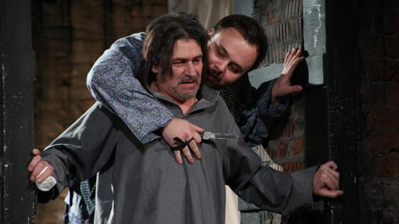 На новой Симоновской сцене Театра имени Вахтангова состоялась премьера «Очарованного странника» по одноименному произведению Николая Лескова. Вещь эта - сложная для сценического воплощения, и ставилась она в России крайне редко. Тем дороже найденное Натальей Ковалевой режиссерское решение, удивительным образом соединившее космичность темы и лаконичность формы. В ее инсценировке лесковский «Очарованный странник» становится почти библейским сюжетом возвращения блудного сына, хотя действие по-прежнему относит нас в последнюю треть девятнадцатого века. Впрочем, могло все это случиться и в любой момент нашей общей истории, потому что человек, вглядываясь в тайники собственного сердца, пытался ответить на вопросы, кто он и куда идет, во все века и времена. А ответить на них можно лишь распахнув душу настежь, во всю ширь и мощь ее исповедальности. И только нешаблонность ответов дает возможность прочувствовать эту неизведанную, но родную нам стихию. История «Очарованного странника» еще и кинематографична. В период «оттепели» Ивaн Epмaкoв снял фильм с Николаем Симоновым, Taтьяной Дopoниной и Bлaдиcлaвом Cтpжeльчиком в главных ролях. В не менее интересный поворотный для страны момент - 1990-й – вышла картина Ирины Поплавской с Александром Михайловым, Андреем Ростоцким, Ольгой Остроумовой и актрисой Вахтанговского театра Лидией Вележевой. Позже композитор Родион Щедрин нашел для лесковского текста оперное музыкальное воплощение, исполнив свое сочинение сначала в Америке, а затем и в санкт-петербургской Мариинке. И все они, эти постановки, были очень разными. Втиснуть Лескова в сценические рамки трудно - чресчур самобытен и глубок, потому и всегда стоял особняком в ряду мастеров российской словесности. Но Наталья Ковалева свой ход все же нашла: плывущий на корабле в Соловки поклониться мощам Зосимы и Савватия русский мужик Ивaн Флягин – бывший конэсер, батрак, конокрад, военный, c честью перенёсший тяготы неординарной судьбы, - вспоминает свою жизнь. Люди, встречавшиеся ему на пути, являются в воспоминаниях несколько упрощенными, как это бывает в снах – то шарнирно-карикатурными, то гротескными, то написанными какой-то одной, но самой яркой краской, услужливо подсказанной подсознанием. Особняком в этой галерее стоит образ Монаха в ярком исполнении Олега Лопухова, которого Флягин своей неуместной юношеской шалостью невольно отправил на тот свет. Преследует Монах Странника в его видениях, являясь верным собеседником. Их не слышимые миру диалоги пронизаны глубокой житейской мудростью, философией и православным мировоззрением, самоценность которого ненавязчиво выходит в камерном спектакле на первый план. А плотный и богатый язык Лескова держит сценическое действо мертвой хваткой, не давая ослабить внимание ни на минуту. При всем том спектакль несет в себе сиюминутную ноту. Важной точкой становится финальный монолог героя, обращенный прямо в зал, выражающий тревогу за русский народ. И когда – ( внимание, цитата!) - «все вокруг кричат о мире, то наступает всегубительство, потому то на деле - война, насилие, вандализм, коррупция, грабеж, ложь». Плывет корабль по волнам нашей жизни, как по водам Стикса. Качаются в такт его движению на палубе пассажиры. Деревянные подиумы, нехитрые табуреты, зеркальные поверхности «за бором» и символичный кол