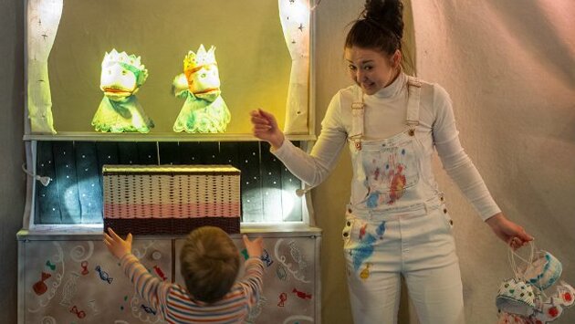 Спектакль-бродилка по сказочному городу Конфетенбургу, где есть домики, звездочки, ангелы и даже настоящий принц, которого когда-то укусил Мышиный король. Но храбрый Щелкунчик победил Мышь в великой битве, где оружием были конфеты, в Конфетенбурге воцарились мир и красота, и теперь туристов, в роли которых выступят зрители, водят смотреть Сырный замок и статую принца. А еще там пекут печенье. С корицей. И в финале спектакля столы, на которых это происходит, превращаются в город Конфетенбург.