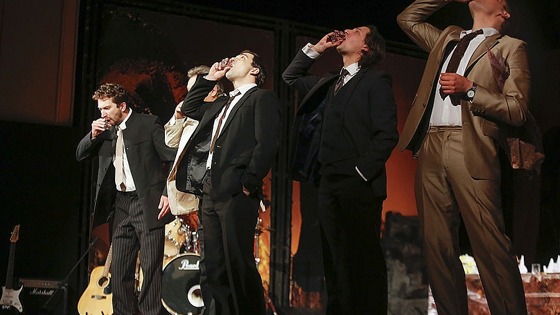 «Театр старый, с традициями и историей, как и всё в этом городе. Кроме всего прочего, театр гордится своей живучестью… сколько тут ссыльных переиграло! Скольких революционеров театр морально поддержал своими спектаклями! Театр решили оставить, и вот он существует и действует, и, что самое удивительное зал почти каждый вечер заполнен, бывают даже аншлаги».Роман Сенчин, «Минус».Пока артисты псковского драмтеатра находились в Сибири - гастролировали в Минусинске Красноярского края, труппа Минусинского драмтеатра отправилась на Северо-Запад России – в Псков и Петербург. В Пскове было показано три спектакля главного режиссёра Минусинского драмтеатра Алексея Песегова.«Это не самый плохой спектакль, который я видел»«Большие гастроли». Так называется ежегодная общероссийская программа, организованная министерством культуры и федеральным Центром поддержки гастрольной деятельности. 83 региона, 237 театров, 1900 спектаклей… От моря до моря. Однако, как ни старайся, не может быть 1900 больших спектаклей. В Пскове в разное время уже гастролировали Александринский театр, петербургский театр им. Ленсовета и другие. Пришла очередь Минусинского драмтеатра.Некоторые псковские зрители рассказывали, что впервые узнали о существовании города Минусинска, когда увидели театральные афиши. Минусинск ещё меньше Пскова, хотя театр старше – идёт уже 136 театральный сезон. Но мало увидеть афиши и заглянуть в Википедию. Псковичи ещё и раскупили билеты в большой зал.Больше всего зрителей собрал спектакль «Тестостерон». Чуть меньше было на «Наваждении Катерины» и «Колыбельной для Софьи», но всё равно по псковским меркам немало.Сцена из спектакля «Тестостерон» Минусинского драмтеатра. Фото Андрея Кокшарова.Итак, у Катерины наваждение, у Софьи колыбельная, а у мужиков из пьесы Анджея Сарамоновича – тестостерон. Каждый получил по заслугам. После спектакля «Наваждение Катерины» (в основе очерк Николая Лескова «Леди Макбет Мценского уезда») зрители делились впечатлениями: «Я даже расплакалась», «Неплохо», «Это не самый плохой спектакль, который я видел»… Не восторги, но благожелательное отношение. Путь от венчания до одичания не показался зрителям неубедительным.Больше всего запомнились слова немолодой женщины, с грохотом упавшей на пол при попытке выйти из зала за минуту до того, как в зале включили свет. Мы её подняли, и она нашла в себе силы произнести: «Я как Катерина». – «Ну, не совсем», - ответил я. «Да, не совсем», - попыталась она улыбнуться.С Катериной на сцене всё было болезненнее. Её падение было намного дольше и страшнее.пектакли нам показали разные, но зрительские похвалы и претензии разделились примерно в одинаковой пропорции. Большая часть зрителей не просто добросовестно досиживала до финала, но и устраивала стоячие аплодисменты, не без криков «браво». Меньшая часть недоумевала или возмущалась.Самый показательный пример – спектакль «Тестостерон». Эта польская пьеса в российских театрах востребована. У Сарамоновича в России даже появились подражатели-драматурги и подражатели-киносценаристы. И всё же странно было видеть такой спектакль в рамках «Больших гастролей». «Тестостерон» отлично подходит для антрепризы - для развлечения и извлечения прибыли. Но у «Больших гастролей», кажется, другие задачи. Впрочем, порнографической пьесу «Т
