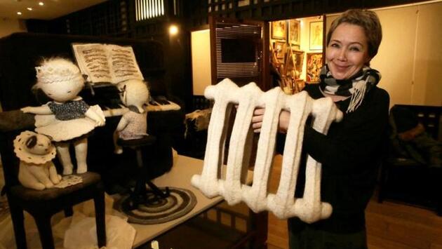 - Я представляю для зрителей историю одного дня - взятую мной из детства и, надеюсь, близкую каждому, - рассказала «ВМ» Ирина Андреева. - Когда я была маленькой, то все лето проводила в гостях у бабушки Нюры, в большом селе в Предуралье. С детства мне навсегда запомнился запах деревни, а войлок - этот материал, который своим запахом напоминает деревню. Первые работы из войлока я на четвертом курсе Удмуртского государственного университета, где я училась на художественно-графическом факультете в 1995 году. С войлоком у нас в университете никто не хотел работать - слишком это было хлопотно - работать с этим материалом. Я валяю из войлока довольно крупные предметы - фортепиано, шкафы, стулья, столы - почти в натуральную величину и делаю различных персонажей. При этом я не гонюсь за излишней деталировкой - лица у моих персонажей схематичны - пусть каждый додумывает сам. Сюжеты, о которых я рассказываю, близки каждому и понятны - а сам материал, это материал памяти - его очень хорошо вспоминать.
