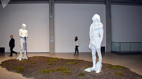 БАКУ, 14 дек — Sputnik, Кямаля Алиева. Выставка "Разрушаясь, стремимся ввысь" раскрывает отношение к истории культуры и монументальности и рассмотрит феномен состояний, постоянно сопровождающих человечество. Об этом на открытии экспозиции в Центре современного искусства YARAT заявила куратор выставки – дочь министра культуры и туризмы Абульфаса Гараева Суада Гараева-Малеки, сообщает Sputnik Азербайджан. Она отметила, что организаторы всей командой долгое время готовились к осуществлению этого необычного проекта, в рамках которого впервые бакинцам представят работы всемирно известных зарубежных художников — Резы Арамеша, Важико Чачхиани, Жана Фабра, Гошки Мацуги и Стивена Родса. По ее словам, каждая из представленных работ характеризуется стремлением двигаться вперед и постоянной борьбой с растерянностью и забвением. Среди почетных гостей выставки были министр культуры и туризма Абульфас Гараев, председатель Государственного комитета по проблемам семьи, женщин и детей АР Хиджран Гусейнова, народный художник Азербайджана Ариф Гусейнов и многие другие деятели культуры и искусства, которые были приятно удивлены представленными работами. Выставка была разделена на несколько частей. На первом этаже Центра была представлена видеоинсталляция "Но ах, мои враги и о, мои друзья" грузинского художника Важико Чачхиани, который живет в Берлине. Инсталляция рассказывает историю советского человека кавказского происхождения, который волочит нелепый социалистический памятник за своим грузовиком. Своей работой автор хотел показать, что со временем человек идет вперед и история возобновляется, а все старое утрачивается. Также на первом этаже представили апокалиптическую инсталляцию американского художника Стивена Родса Wilkommen Assumption ("Убеждения Уилькоммена"). В работе затрагивались катастрофические последствия отказа признать экологический и экономический крах, с которым сталкивается современное поколение. На втором этаже Центра посетителям предстали работы британской художницы Гошка Мацуга, объединенные под общим названием "До начала и после конца". На двух столах была разложена белая бумага, на которой были запечатлены различные рисунки, якобы сделанные роботами. Этим художница хотела сказать: мир настолько прогрессирует, что роботы со временем будут заменять людей во многих областях. Художница выставила не одну, а сразу три свои работы: также бакинскому зрителю представлены "Пробуждение человечества" и "Деструктивная природа человечества", которые являются продолжением первой инсталляции. Полной противоположностью роботизированным рисункам стал огромный монументальный рисунок на полотне L'heure Bleu ("Голубой час"), собственноручно написанный бельгийским художником Яном Фабром, символизирующий мистическое время, когда ночные животные засыпают, а дневные пробуждаются. Особое внимание гостей также привлекли работы иранского художника Резы Арамеша "Участок Осени – Исследование Ренессансного Сада", представляющие собой две крупномасштабные скульптуры, созданные на протяжение двух лет, то есть с 2014 по 2016 годы. Они предвещали якобы появление нового героя – жертвы, а не завоевателя, напоминая об уничтожении древних памятников. Второй куратор выставки Бьйорн Гельдхоф, который впервые прилетел в Баку и был в восторге от города,