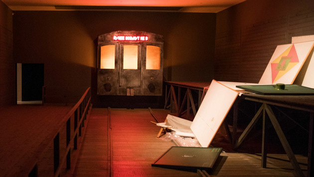 Сразу же следует сказать, что выставка потрясающая, все устроено просто блестяще, все работает! Илья и Эмилия — великие мастера закрученной и захватывающей зрителя пространственной интриги. От зала к залу освещение меняется от беспросветного мрака до радостного сияния. Проводя зрителя по десяти залам, занявшим целый этаж Тейт Модерн, художники мастерски затягивают зрителей в целый спектр переживаний — от глубочайшей меланхолии в «Письмах матери» до захватывающего аттракциона по рассматриванию фрагментов живописи в телескоп. И заставляют читать бесконечный текст. Признаюсь, я тоже начинал вчитываться в не совсем чуждые мне английские буковки, хотя с большинством текстов уже ознакомился прежде на родном наречии. И при таком отстранении еще раз убедился в важной максиме — кабаковские тексты вовсе не имеют цели как-то разъяснить происходящее, а являются очень важной частью тотальной инсталляции. После короткой ретроспективы работ Кабакова 1960–1970-х годов в экспозиции располагается его самая знаменитая инсталляция — «Человек, улетевший в космос из своей комнаты». Она датирована 1982 годом, но была показана публике в 1988-м в нью-йоркской Feldman Gallery на выставке «10 персонажей», с которой Кабаков осуществил свой звездный дебют в Америке, далее везде. Не знаю, как остальных зрителей, но меня лично так и тянуло воспользоваться странным приспособлением из пружин и резиновых жгутов, с помощью которого обитатель коммуналки отправился в Космос. Остановило меня только понимание того, что этот человек и там хотел бы остаться без компании. И все без исключения обитатели этих комнат («Бездарный художник», «Человек, который собирал мнения других» и все остальные) желали только одного — чтобы я оставил их в покое и быстрее удалился. Это сообщество предельных аутистов и мизантропов беседовало только на кухне, где были расставлены одинаковые кухонные тумбочки, а над ними мрачные и аутичные планшеты, закрашенные устрашающе невыразительной «коммунальной» краской с трагически одинокими и много пережившими предметами кухонного быта — терками, кастрюльками, половниками. Такими же одинокими и непристроенными, как и их хозяева, которые обмениваются невыразительными фразами: «Чья это терка?» — «Не знаю». «Каждая комната похожа на тюрьму и на человека», — говорил Кабаков в 1989 году в одном интервью. Илья и Эмилия Кабаковы. Человек, улетевший в космос из своей комнаты. Вид инсталляции на выставке «В будущее возьмут не всех» в Тейт Модерн, Лондон. 2017. © Tate Photography (Andrew Dunkley) И там ничего не было про этот ужасный тоталитарный режим, как думали американцы и европейцы. Если вспомнить помещения, которые обследуют копы в американских боевиках, то там можно найти места и пострашнее. У Кабакова речь шла об очень бедных во всех смыслах этого слова людях, замкнутых в своих мирках и не способных ни к какой коммуникации. Художник Кабаков «коммунального периода» выражает крайние стадии депрессивности, мизантропии, эскапизма и клаустрофобии. При этом в жизни Илья Иосифович Кабаков — человек необыкновенно обаятельный и неизменно благожелательный даже к злобным критикам. Его окружали члены собранной им НОМы — люди в большинстве своем открытые и жизнерадостные. Именно гиперкоммуникативность Ильи Кабакова позволила ему сплотить и сформулировать вокруг себя круг м