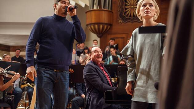 Два вечера подряд на сцене Большого концертного зала имени Салиха Сайдашева шутил, представлял артистов, музицировал на рояле и пел песни известнейший композитор, художественный руководитель и председатель художественного совета Московской областной филармонии Максим Дунаевский. В преддверии Нового года «Казанский репортер» посидел с гостем за чашечкой кофе. Дунаевский – представитель самой популярной, наверное, в нашей стране музыкальной династии. Его отец – родоначальник советской музыкальной комедии. Помните, самая первая из них – «Веселые ребята». А потом были «Дети капитана Гранта», «Цирк», «Волга-Волга», «Моя любовь», «Светлый путь», «Весна», «Кубанские казаки»… Песни Исаака Осиповича уходили в народ сразу же после премьерного исполнения: «А ну-ка песню нам пропой, веселый ветер», «Ой, цветет калина», «Каховка, Каховка, родная винтовка», «Широка страна моя родная», «Дорогая моя столица» и многие, многие другие. И с ними, конечно же, могут поспорить по популярности песни его сына – Максима Исааковича: «Пора-пора-порадуемся на своем веку», «Я Водяной, я Водяной, поговорил бы кто со мной», «Позвони мне, позвони», «Ну что сказать, ну что сказать, устроены так люди», «Но есть на свете ветер перемен»… Умышленно перечисляю не названия, а строчки из текста песен. Согласитесь, каждая из них сразу же начинает звучать в голове мелодией. – Конечно, нас путают, – смеется Максим Исаакович. – Что уж говорить о молодых людях, если звонят солидные редакторы с солидного Первого канала: «Мы делаем сейчас телепрограмму, посвященную Любовь Орловой, очень просим Вас поучаствовать». «А как вы это мыслите», – уточняю я. «Вы же ее хорошо знали, Вы же с ней работали, писали для нее песни…» И просят прислать «мои» ноты «Лунного вальса» из кинофильма «Цирк». Такой вот анахронизм, сбивание временных рамок. Да, у папы была Любовь Орлова, Леонид Утесов, Лидия Смирнова и многие, многие другие. Но у меня свой набор прекрасных исполнителей, с которыми, уверен, прочно свяжут мою музыку – это Михаил Боярский, Николай Караченцов, Павел Смеян, Жанна Рождественская, Валерия Ланская…Но на «Новогодний вечер» Максим Исаакович захватил совсем другую команду. – Я привез с собой четырех солистов и хор, – уточняет он. – Не знаю – почему. У вас же здесь есть свои замечательные певцы, они тоже участвовали в концертах. Может быть, в следующий раз, если он будет, то мы обойдемся силами только казанских артистов. Но, с другой стороны, приехали ведь не абы кто, а те, в чьем репертуаре уже давно мои песни, они уже давно в материале и готовы выйти к оркестру и сразу спеть. Действительно, и солистке «Cocktail-project» Ангелине Сергеевой, и актрисе Государственного театра киноактера Ольге Ажажа, и солистке Московской областной филармонии Варваре Комаровской, и артисту московских мюзиклов Антону Арцеву, и актеру театра «Ленком» Илье Трофимову репертуар концерта знаком давно: все они не только не раз выступали в творческих вечерах Максима Дунаевского, но и поют в его мюзиклах, идущих на московских сценах. Хотя организаторы «Новогоднего вечера» уверяют, что программа подбиралась специально под казанского зрителя, каждое из исполнявшихся произведений за последние пару лет, прошедших с семидесятилетнего юбилея композитора, были обкатаны на сценах России не однократно. Но ведь с исполне