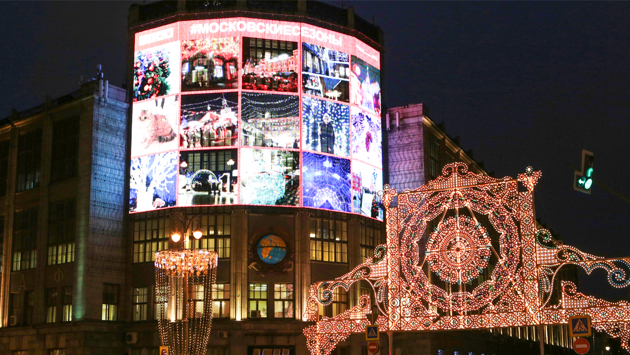 Снежинки, елочки и подарки: на медиафасадах в центре Москвы запустят поздравления с Новым годом